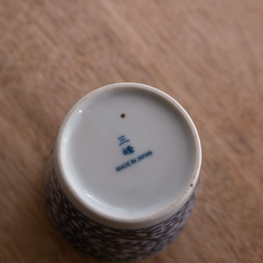 口径8.5cm、高さ6.5cmの程よいサイズ感で、蕎麦猪口としてはもちろん、小鉢や湯呑み代わり、デザートカップにも使える汎用性の高さが魅力です。厚みのある磁器で持ちやすく、安定感があります。