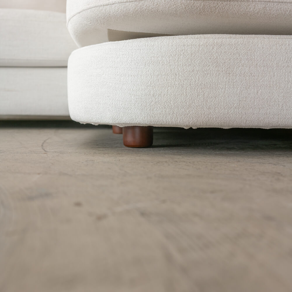 脚部にはタモ無垢材を使用。木目のやさしさが白のファブリックと美しく調和し、全体の印象を軽やかにまとめます。
