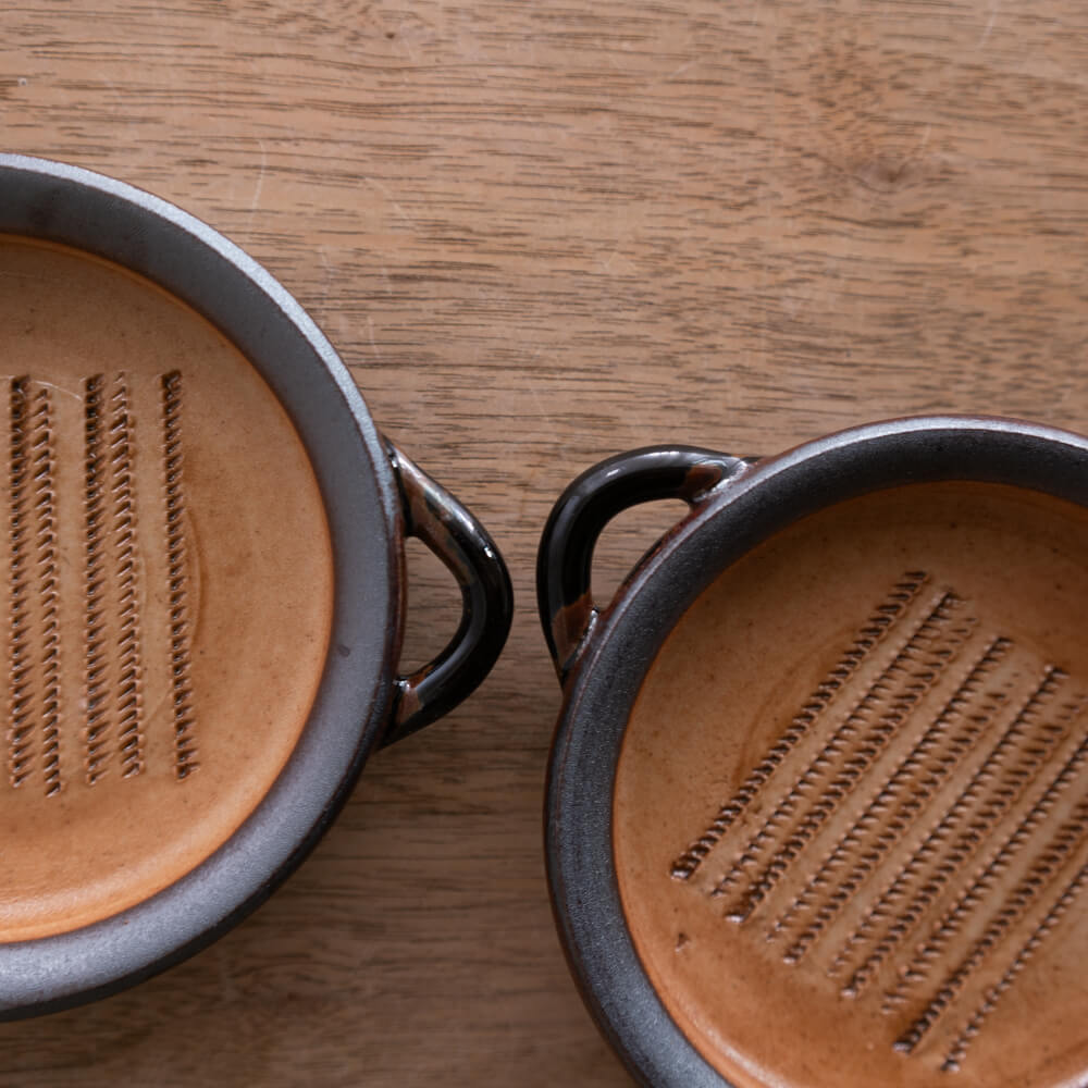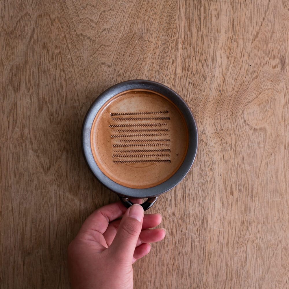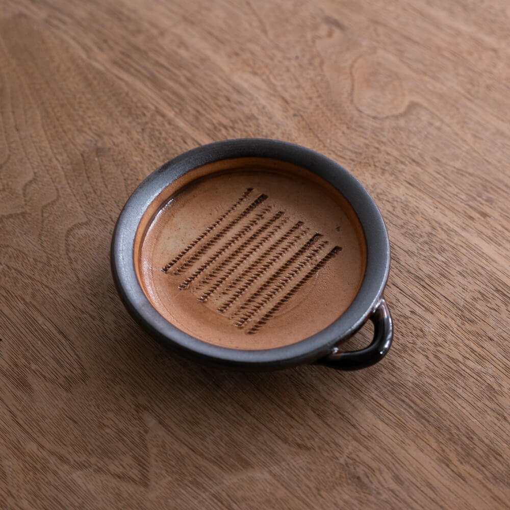 少しの生姜も、にんにくも、きちんとおろしたい。そんな小さなこだわりに寄り添う、陶器のミニおろし皿です。味わい深いサビ釉が食卓に穏やかに馴染み、使うたびに心地よい温もりを感じさせます。