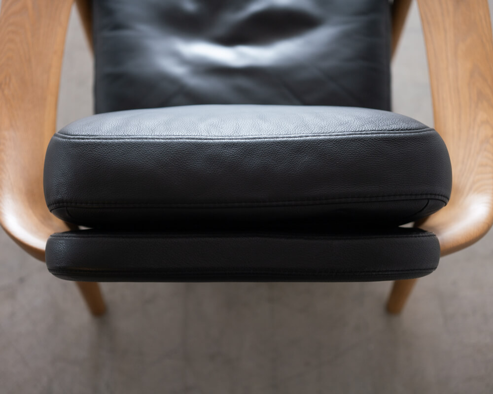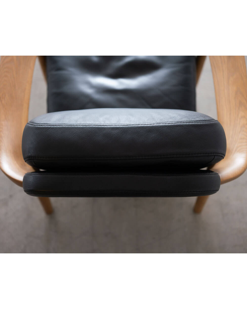 コンパクトなサイズながら、深く腰を預けられる安定感。リビングや書斎のコーナーに置くだけで、上質な“ひとり時間”を演出します。別売りのオットマンを組み合わせれば、より贅沢なリラックススタイルにも。