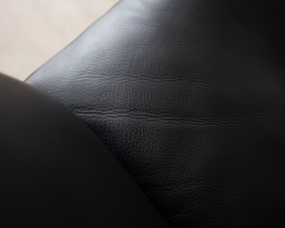 座面には厚みのある本牛革を使用。耐久性と高級感を兼ね備え、使い込むほどに深みを増す上質な素材です。背・座クッションをカバーで一体化することで、サイドから見たときのラインも美しく、ホコリが溜まりにくい構造になっています。