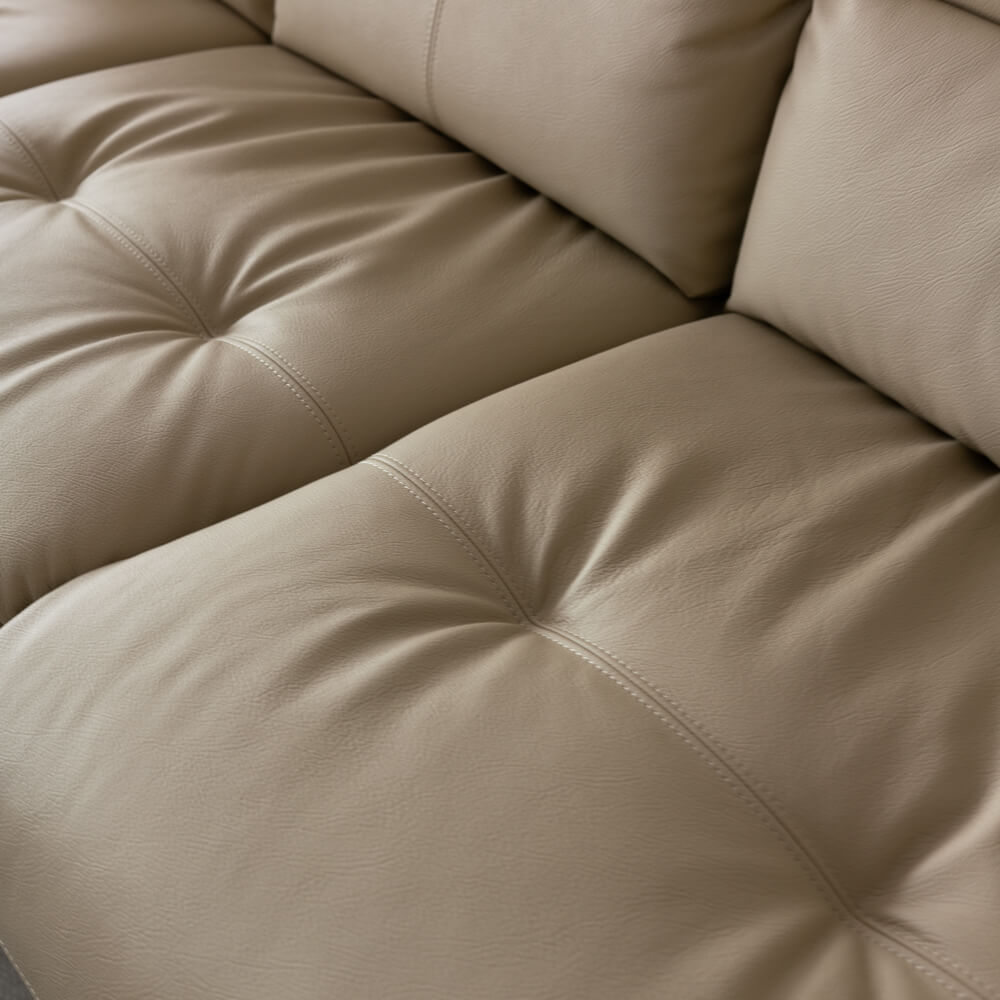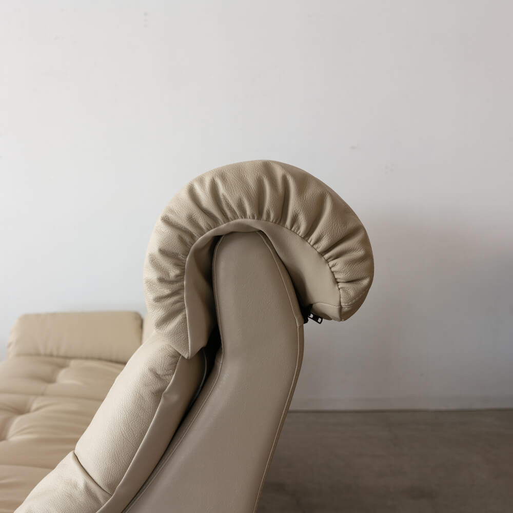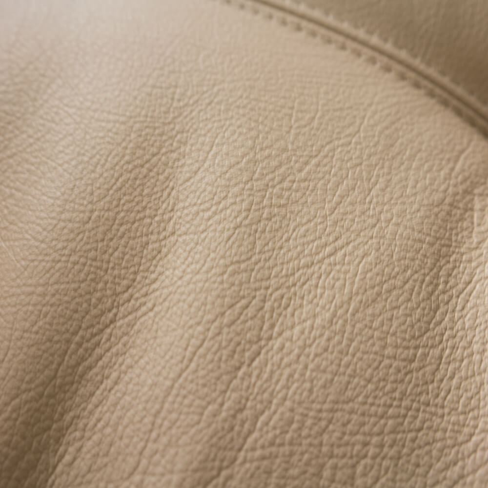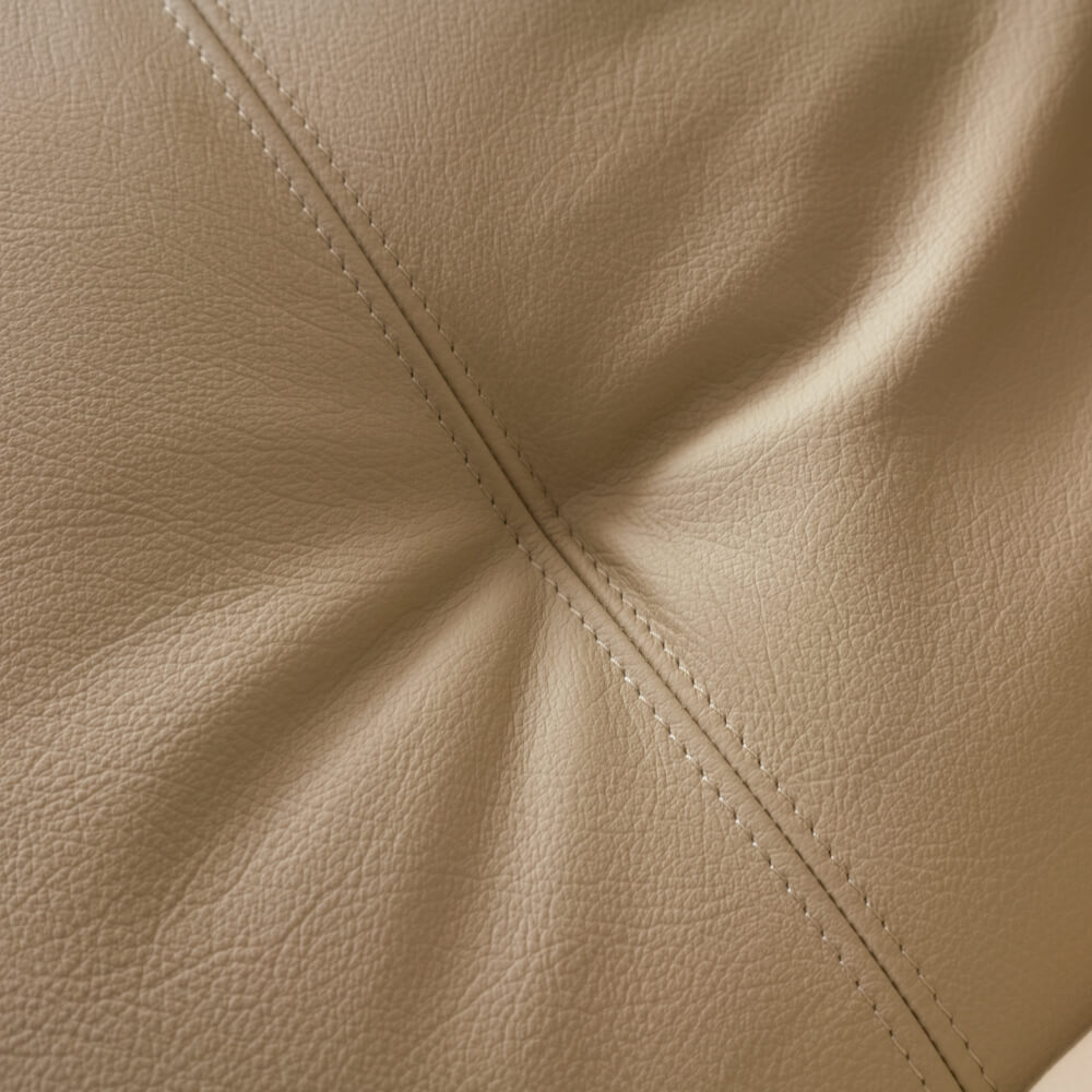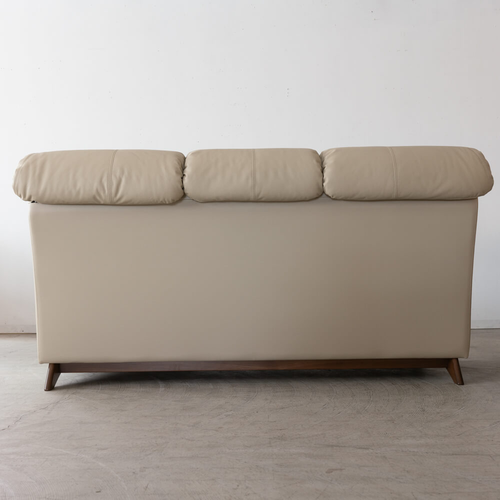 上質な本革(一部合成皮革)を贅沢に使用。使うほどに柔らかく手に馴染み、自然な艶を帯びていくのが魅力です。ベージュの革色は空間に優しく溶け込み、木部のウレタン塗装脚と美しく調和。リビングを上質なくつろぎの場へと変えてくれます。