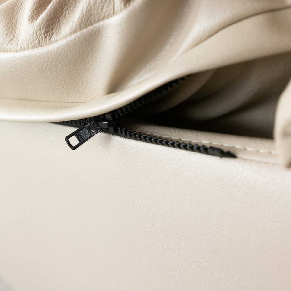 本体と座クッション以外はカバーリング式。日常的なほこりや汚れが気になる部分も、外してお手入れできる安心設計です。定期的なレザークリームのお手入れで、美しい質感を長く保てます。