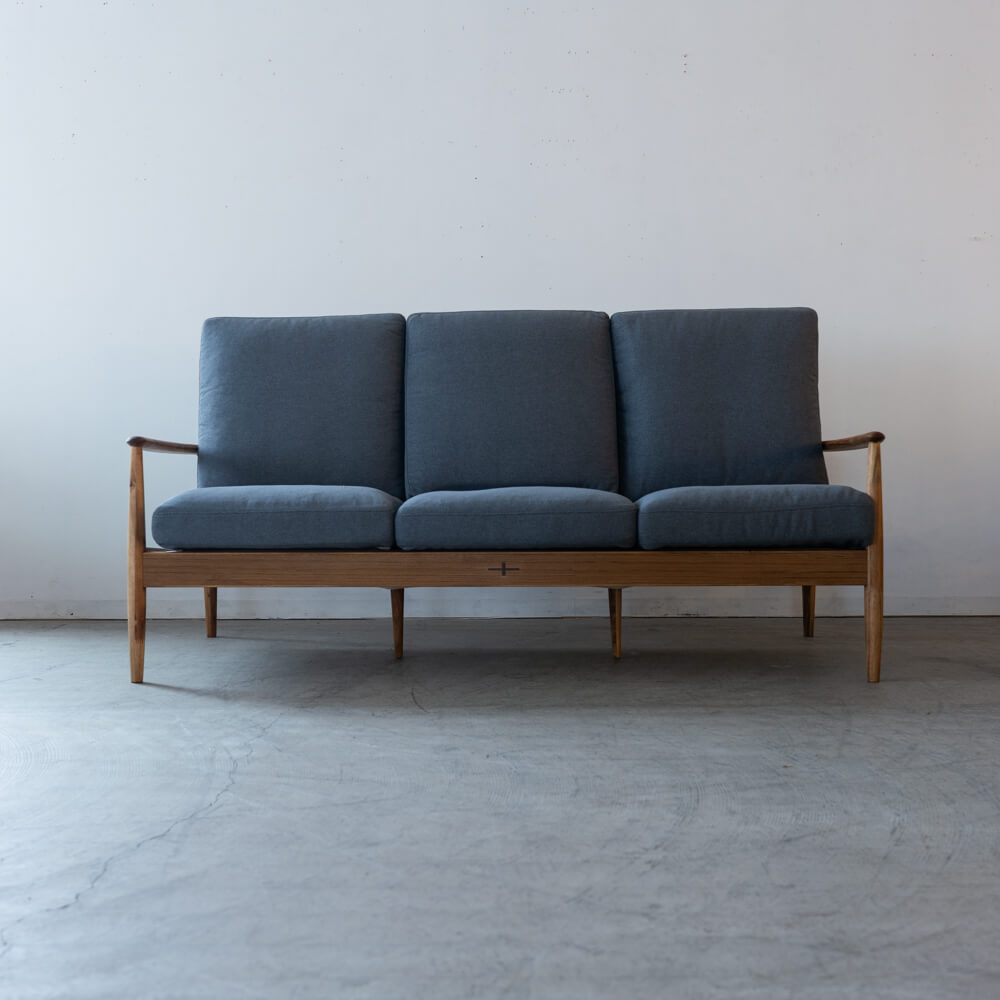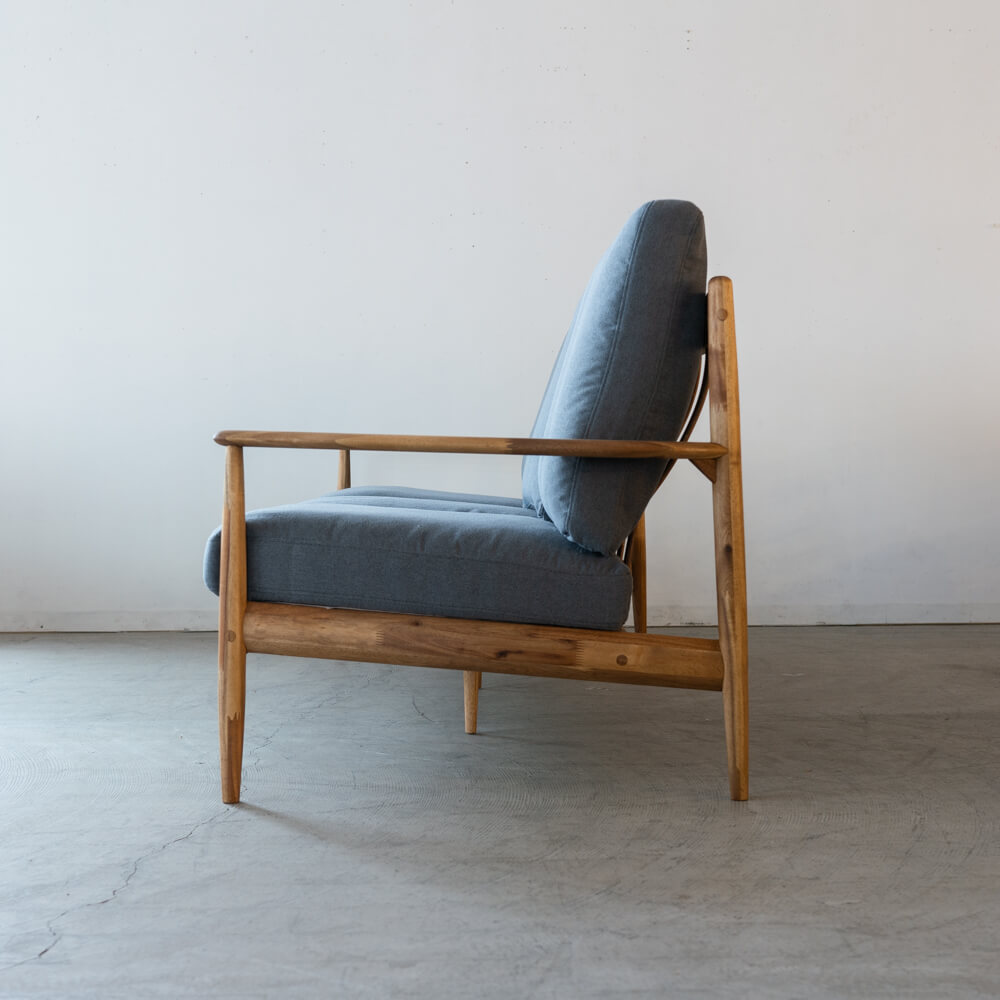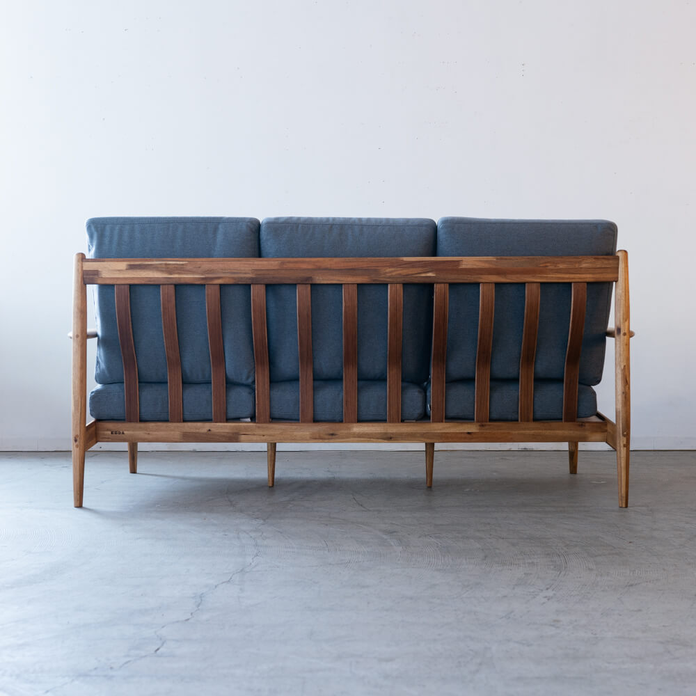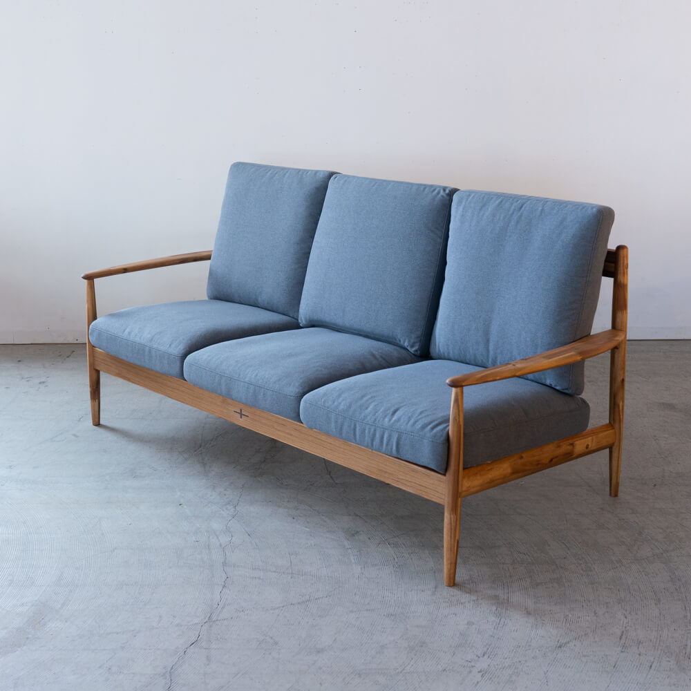 淡いブルーグレーのファブリックと、アカシア無垢材のあたたかなフレームが調和した「EDDA 3Pソファ」。北欧ヴィンテージの空気感を取り入れながら、日本の住空間にすっと馴染むコンパクトな設計です。どの角度から見ても軽やかで美しく、空間に“上質な透明感”をもたらします。
