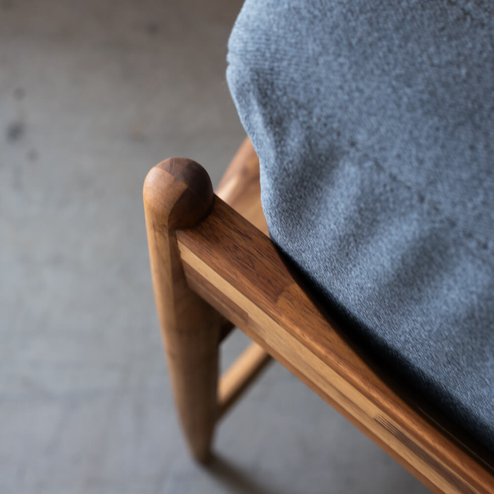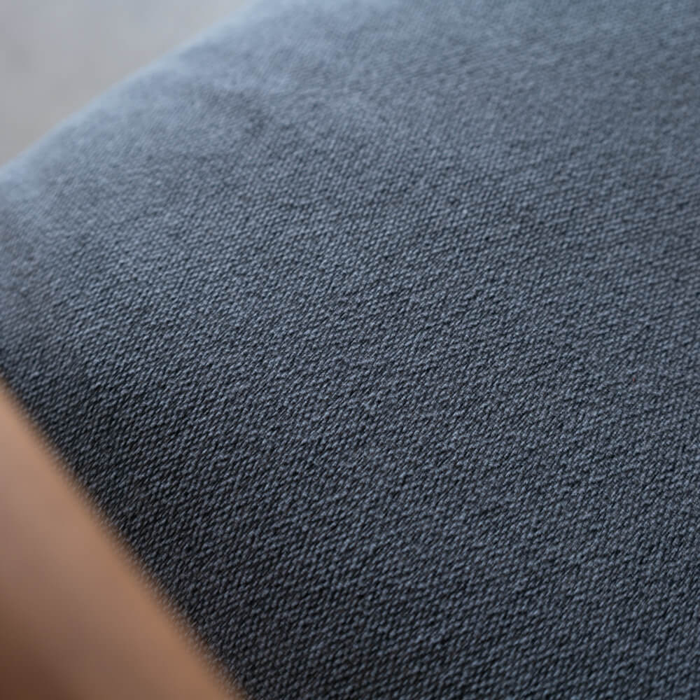 淡いブルーグレーのファブリックは、光の加減でやわらかにも、凛とした印象にも変化。ナチュラルウッドとの相性が抜群で、北欧・Japandi・和モダンなど幅広いスタイルに馴染みます。派手さを抑えたトーンが、部屋に“抜け感”をつくり、家具全体の印象をワンランク上げてくれます。