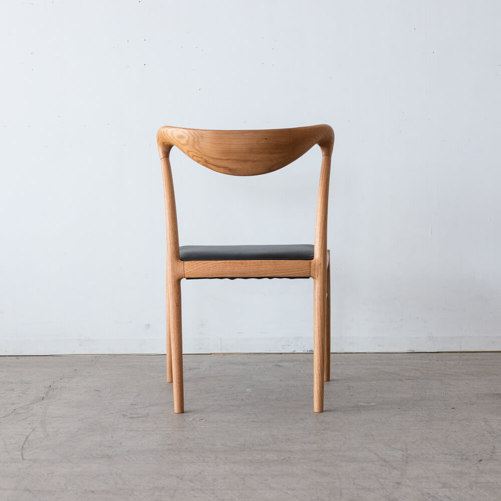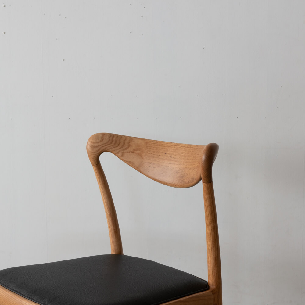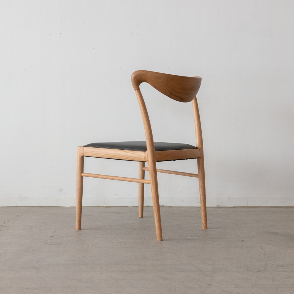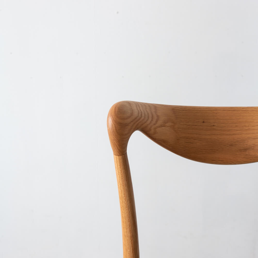 職人技が光る滑らかな曲線の背もたれは、背中にやさしくフィット。圧迫感を感じさせない軽やかなフォルムで、ダイニングを広く見せる効果もあります。北欧の名作椅子を思わせるシルエットは、シンプルながら存在感のあるデザインです。