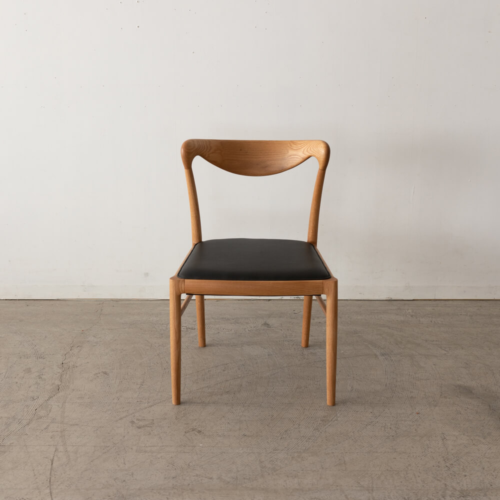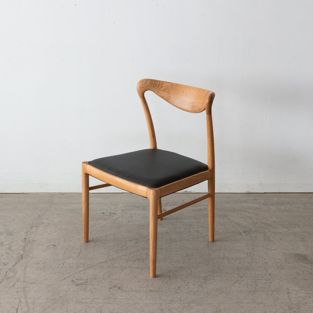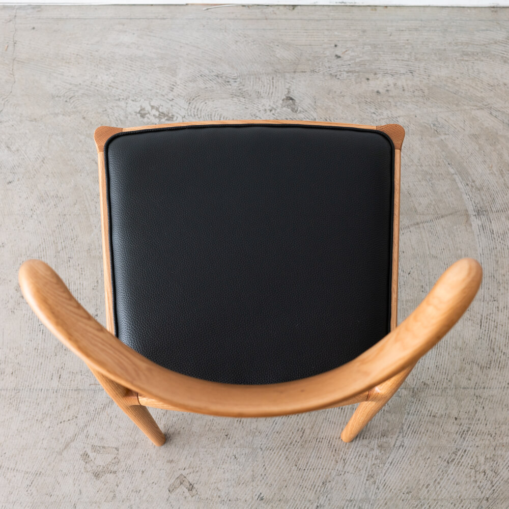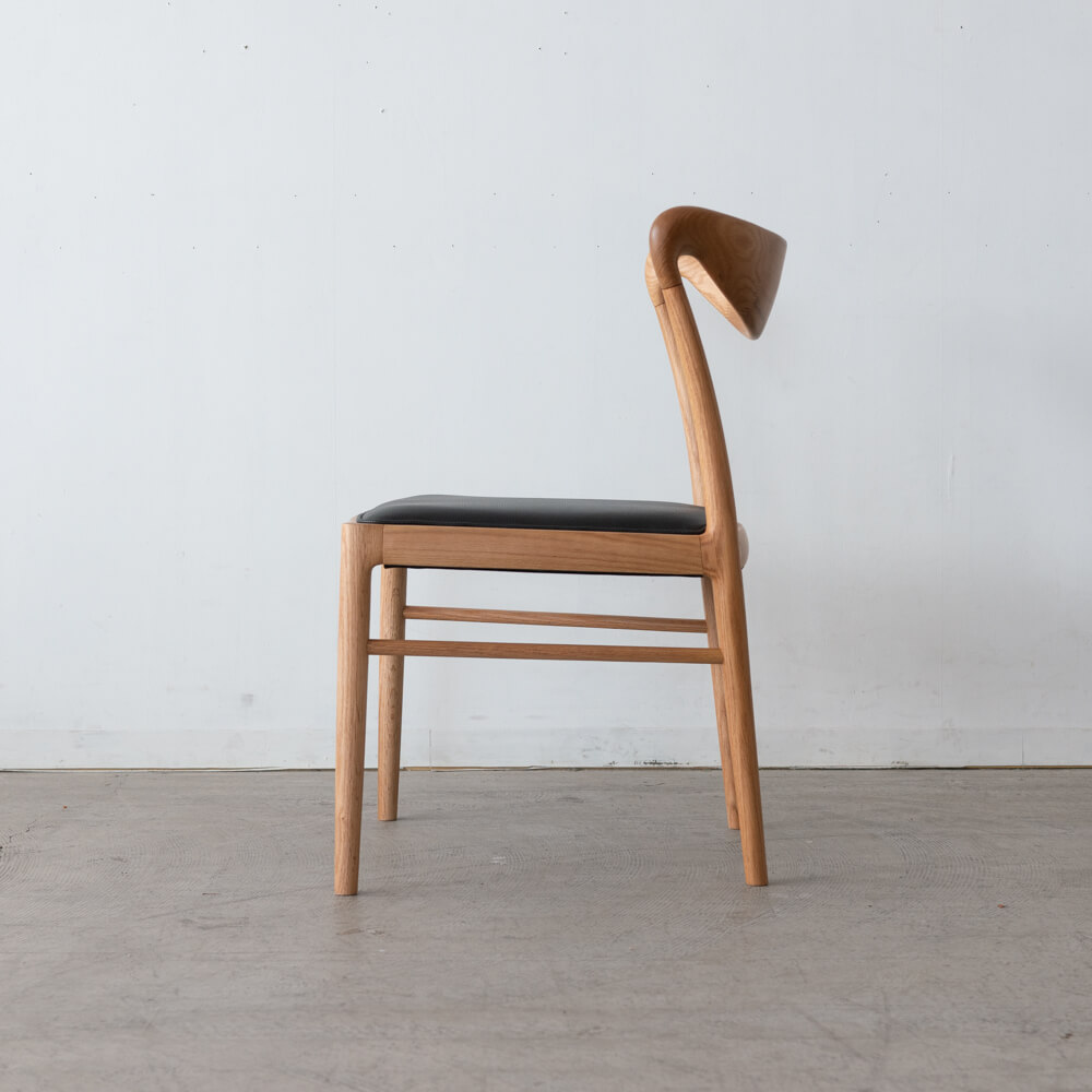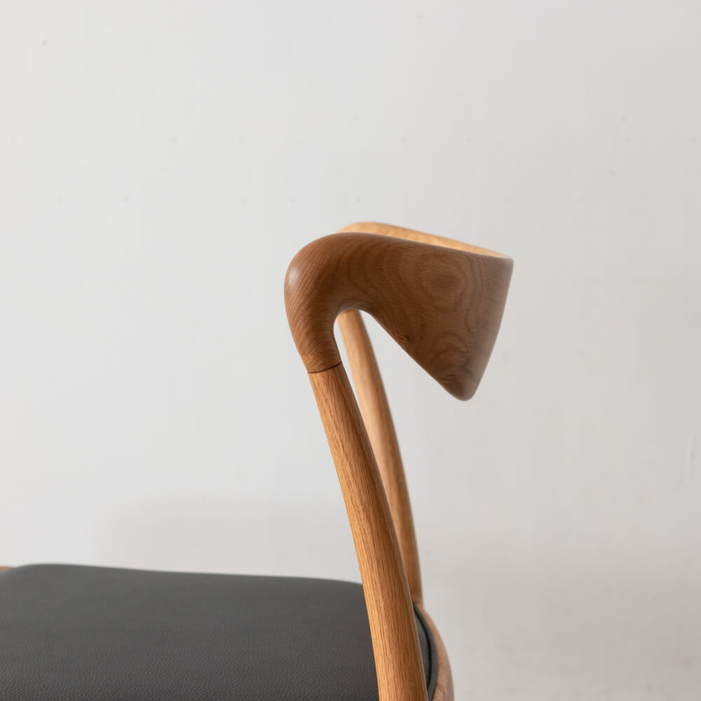 職人技が光る滑らかな曲線の背もたれは、背中にやさしくフィット。圧迫感を感じさせない軽やかなフォルムで、ダイニングを広く見せる効果もあります。北欧の名作椅子を思わせるシルエットは、シンプルながら存在感のあるデザインです。