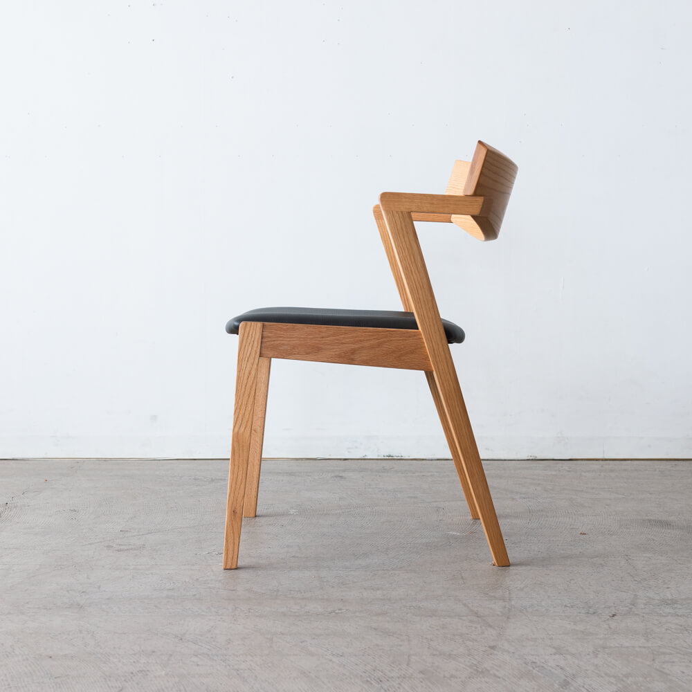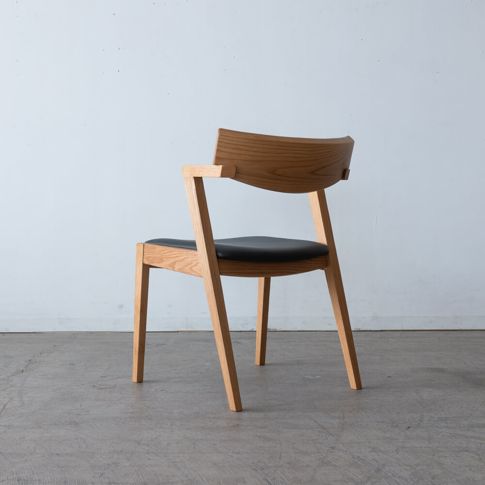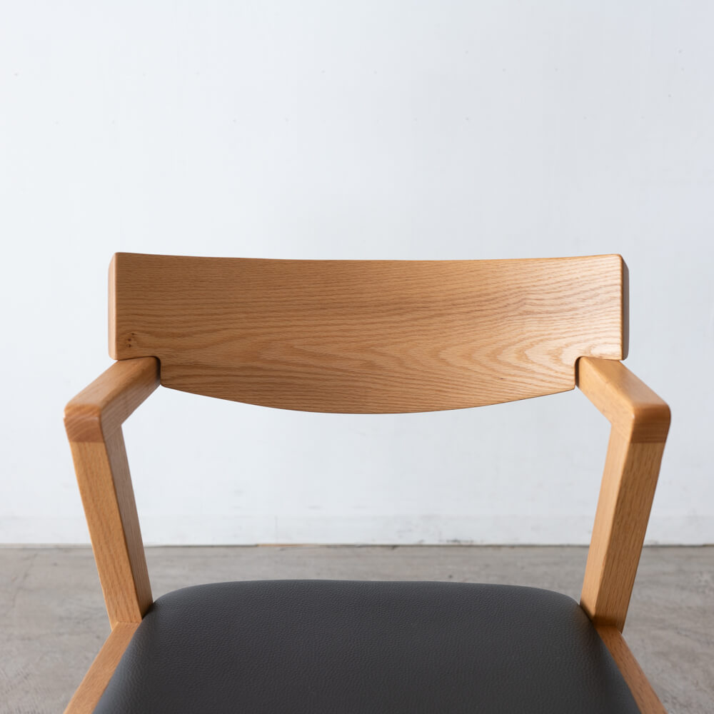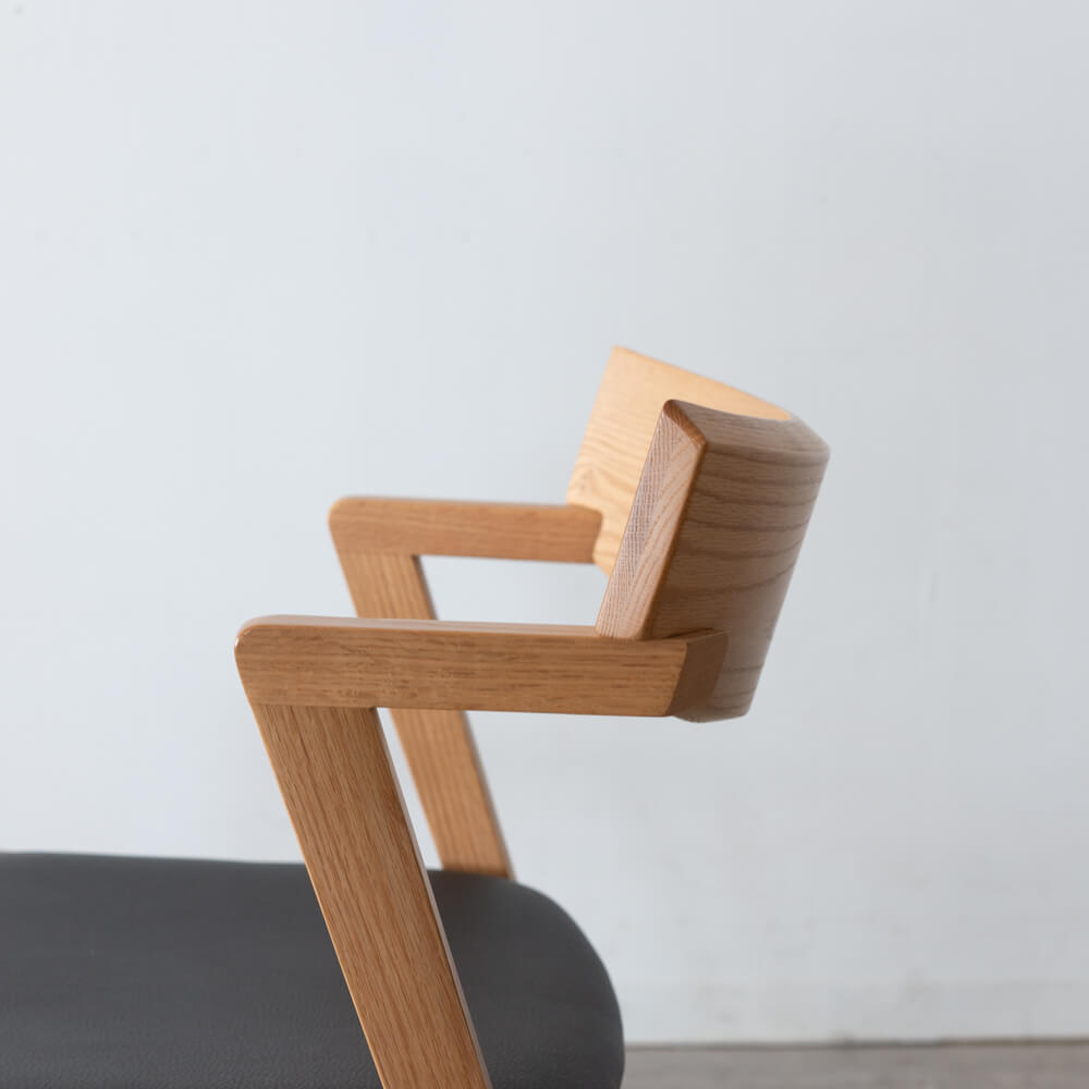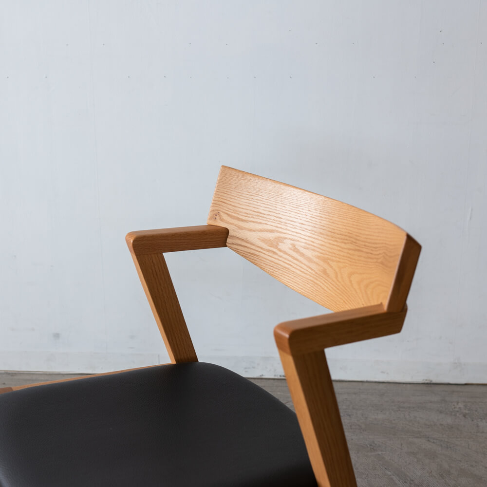 背とアームを一体化させたデザインが印象的。座る人の体をしっかりと支えながらも、抜け感のあるフォルムで圧迫感を軽減します。角度のある背もたれは背中に自然にフィットし、姿勢を保ちながら快適な座り心地を実現。