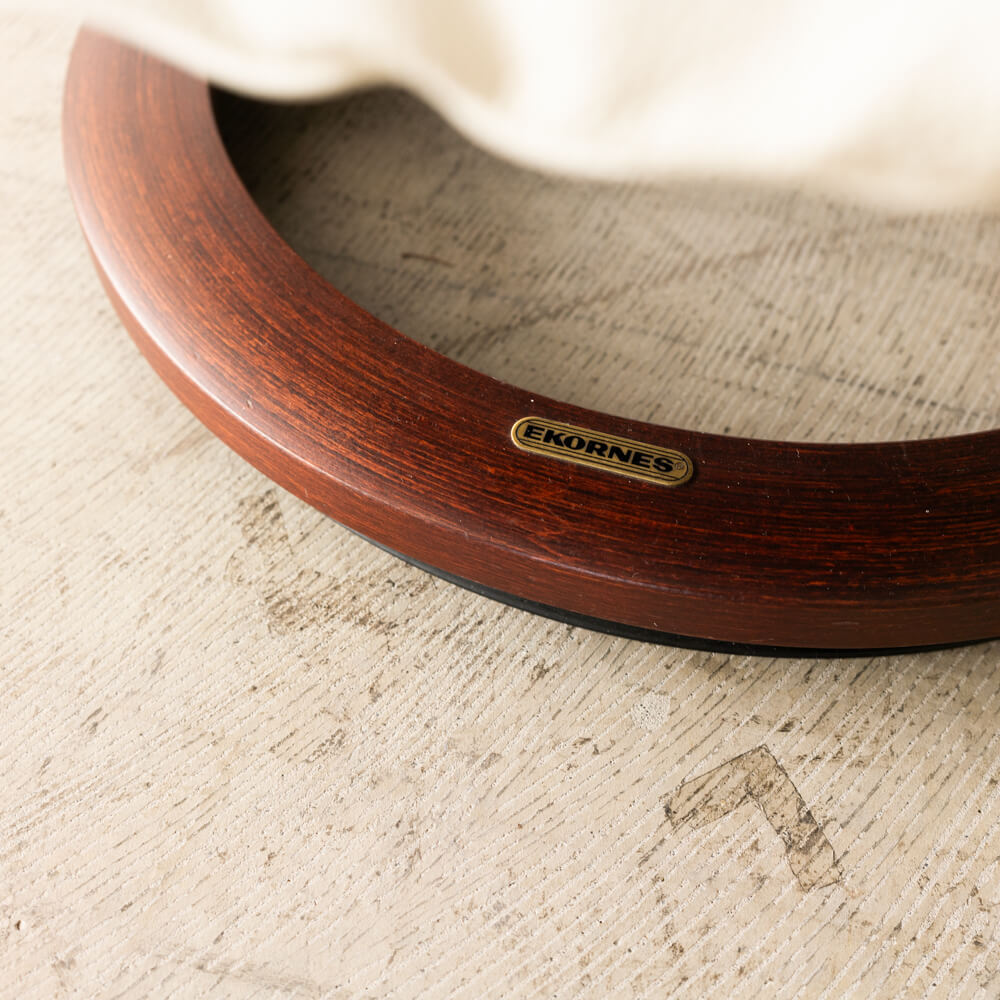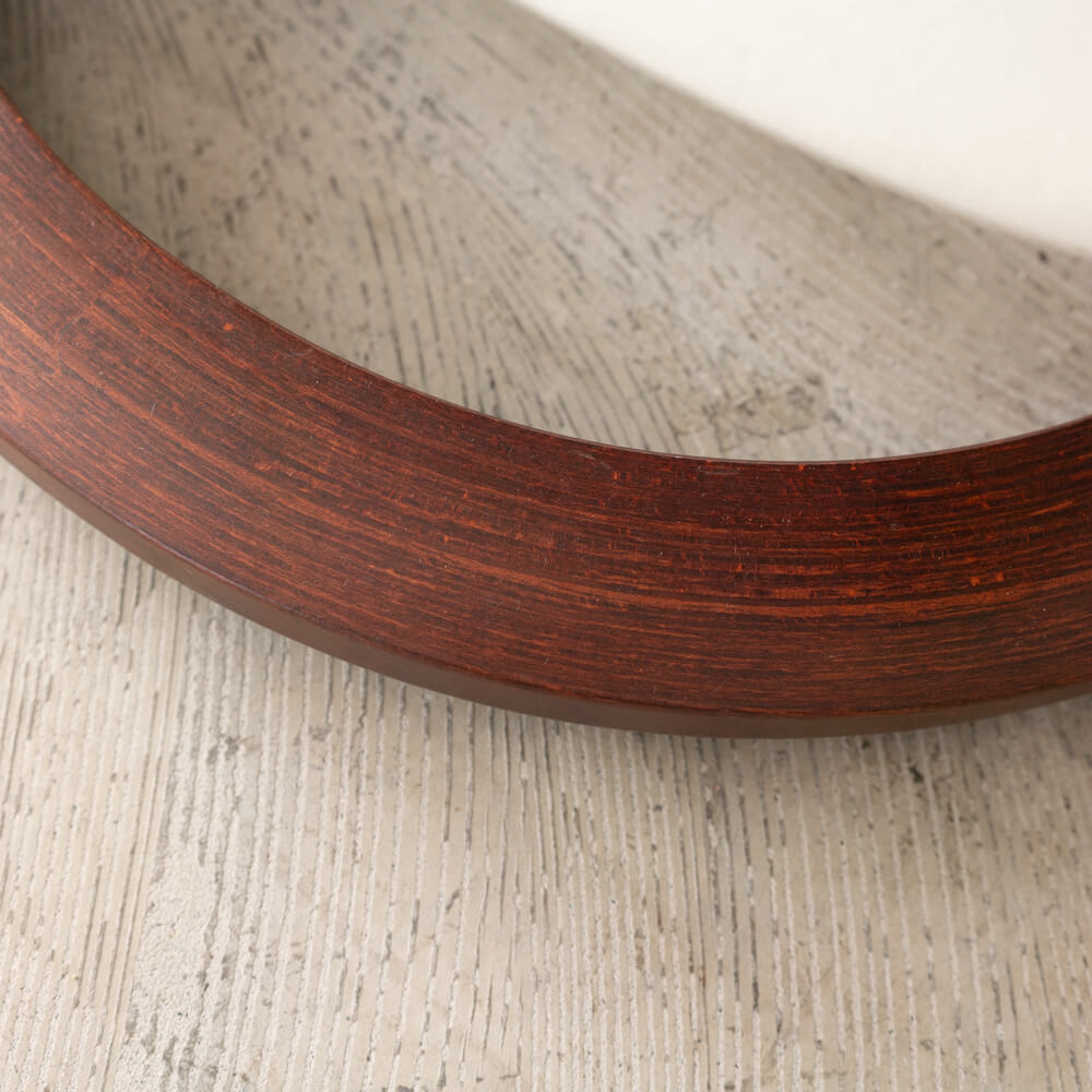木製の円形ベースはデザイン性も高く、マホガニー調の艶やかな仕上げが空間に上質なアクセントを添えます。