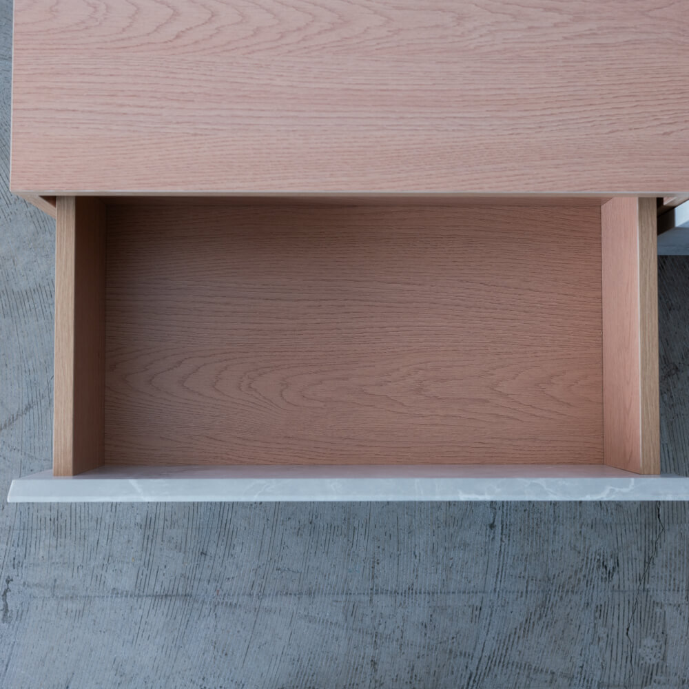 両サイドの引き出しにはソフトクローズ仕様を採用。