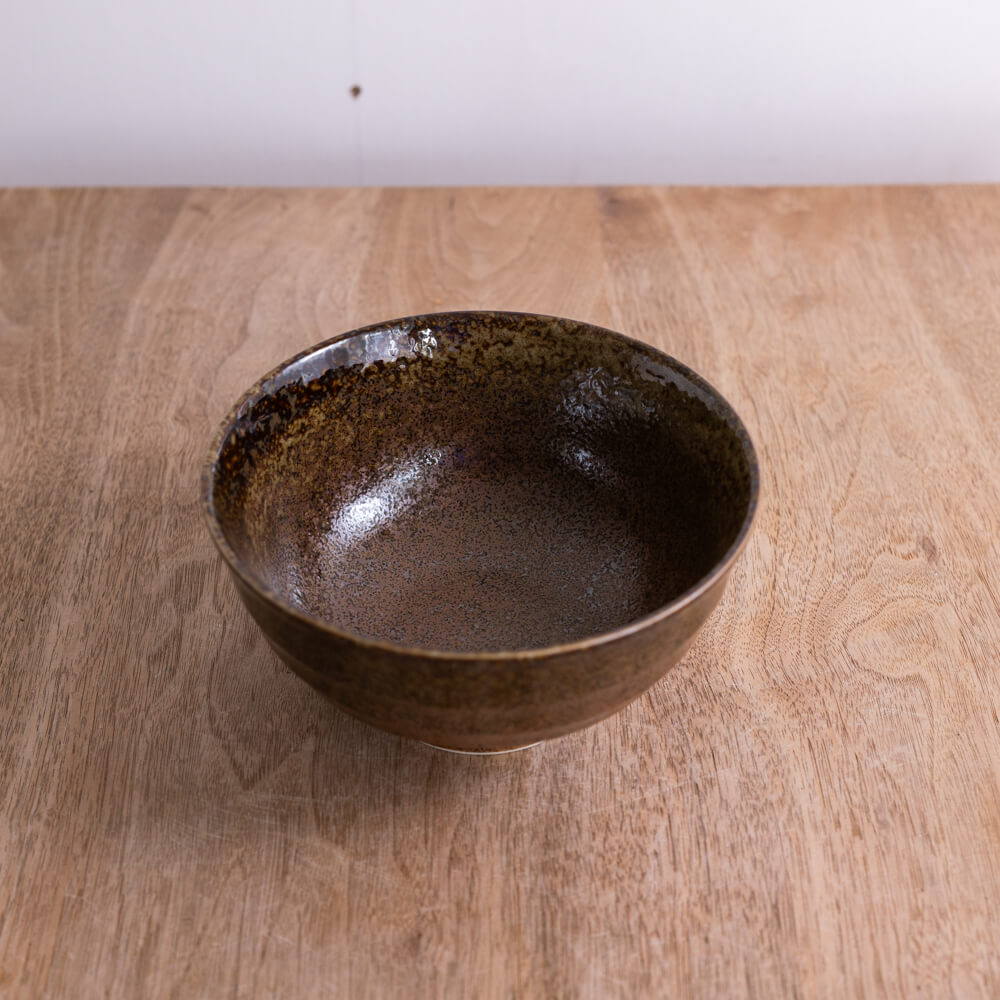 静かな土の表情に、炎が描いた揺らぎの景色。《美濃古道 5.5多用丼》は、焼きの表情をそのまま写し取ったような、味わい深い日本の陶器です。オリーブと焦げ茶が溶け合う釉薬が生み出す陰影は、料理の色を引き立てながら、食卓に落ち着いた温もりを添えます。