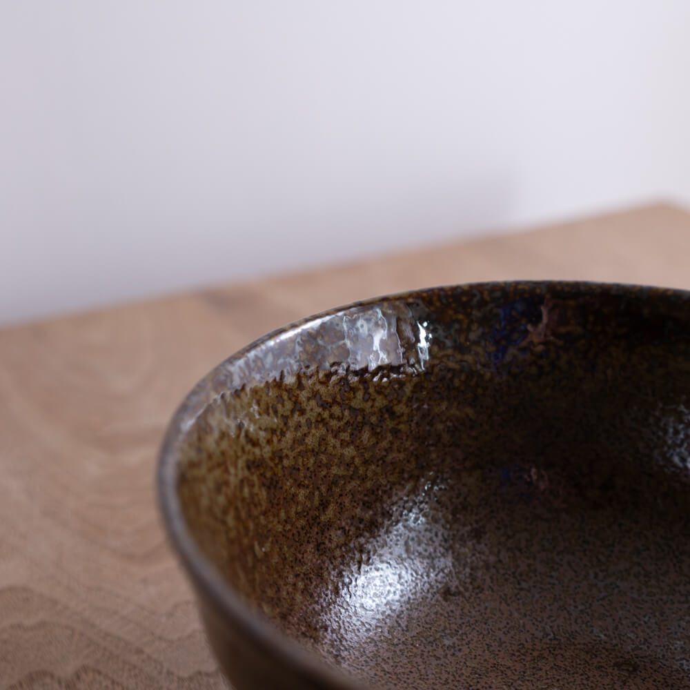 表面に浮かぶ細かな鉄粉と釉のたまり。焼成の温度や炎の流れによって自然に現れる模様は、同じものが二つとない“景色”です。見る角度や光の加減で色合いが変化し、まるで金属のような艶を帯びる瞬間も。手に取るたびに新しい表情を見せてくれます。