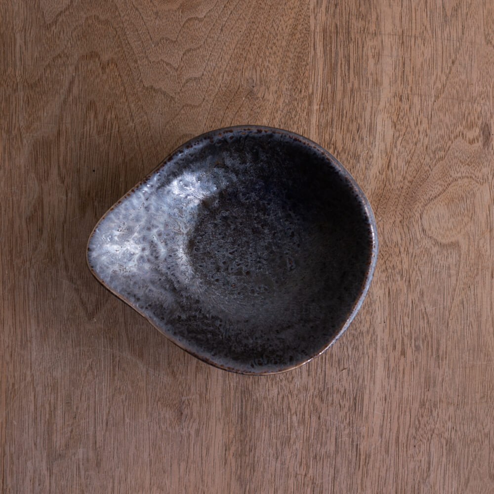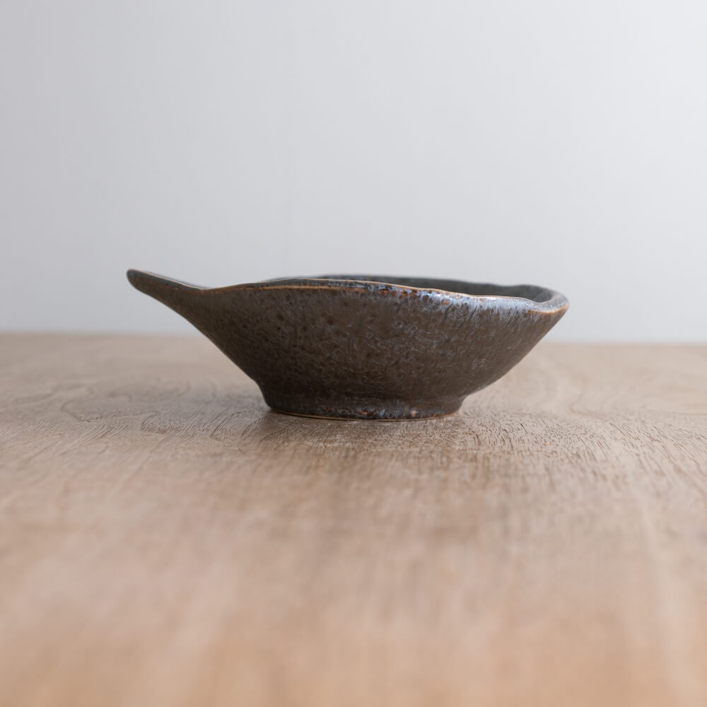 丸みの中に片側だけ少し張り出した形は、手に添わせやすく、取り鉢として理想的。縁にやや立ち上がりがあるため、煮物・汁物・冷菜など幅広い料理に使えます。