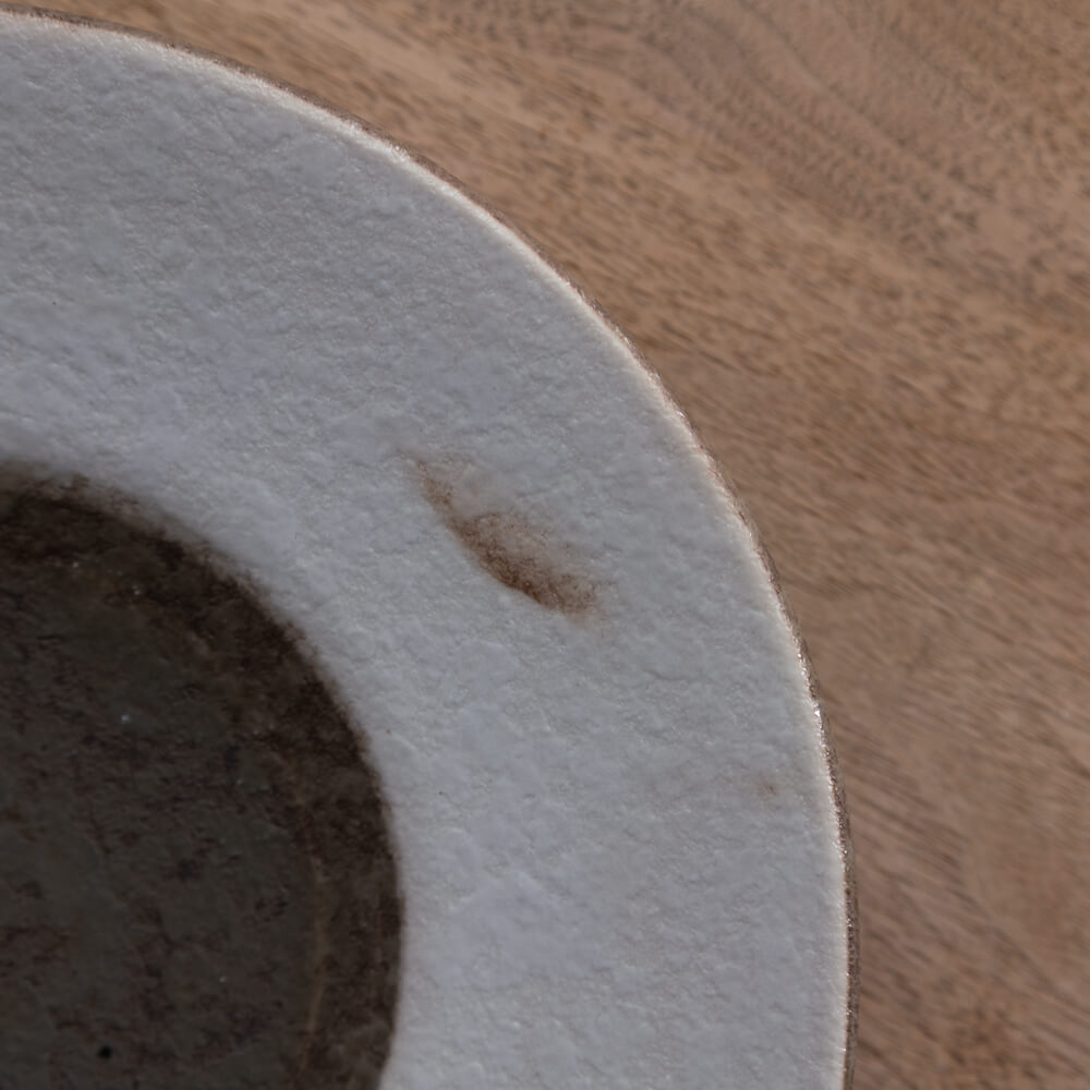 縁には刷毛で施された化粧や、土の素朴な表情がそのまま残されています。一枚ずつ表情が異なり、同じものがない“手仕事のゆらぎ”を味わえます。