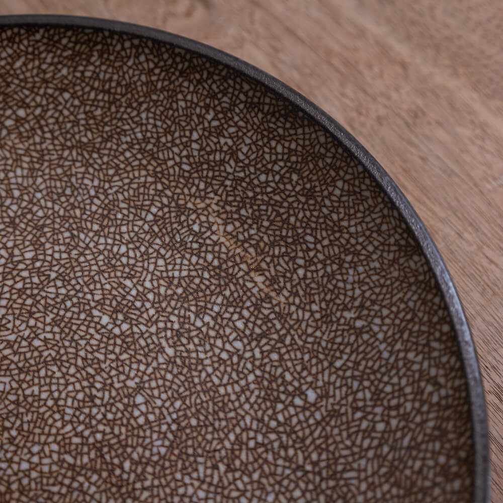 焼成時に生まれる細かな貫入模様が特徴。光の当たり方で濃淡が変わり、料理を盛るたびに違う表情を見せてくれます。和食器の中でも個性がありながら、食材との相性が良い模様です。
