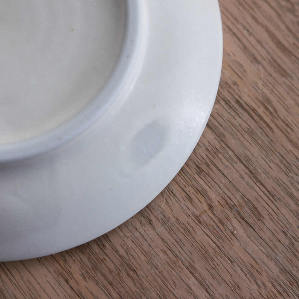 マット調に仕上がったクリーム釉は、光の当たり方で表情が変わり、やわらかく料理を受け止めます。細かな鉄粉や釉薬の溜まりが、ひとつひとつ異なる表情をつくり、素材の個性として楽しめます。