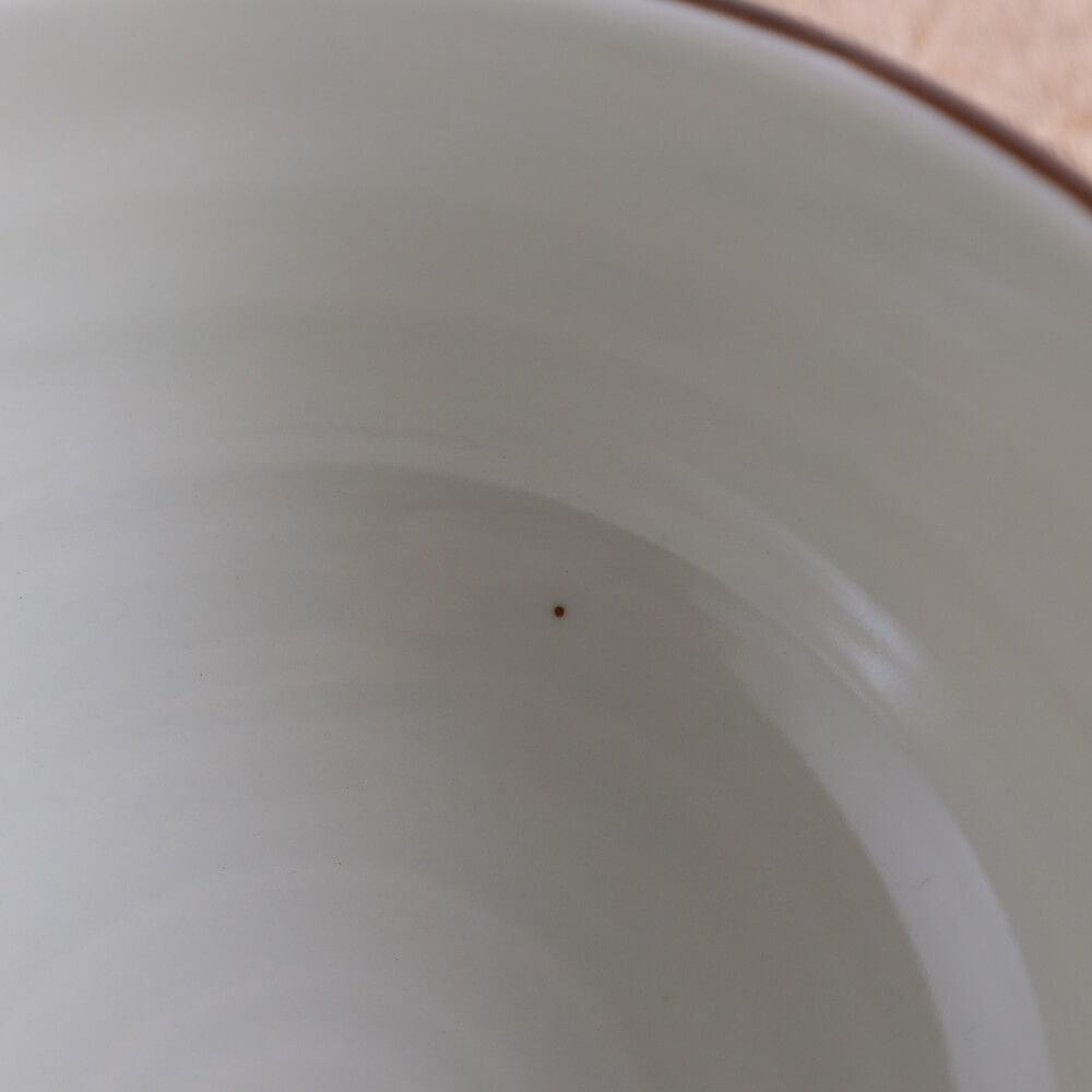 内側はやや乳白がかった白釉で、食材の色をふんわり引き立てます。具材をたっぷり盛っても窮屈に見えず、汁気のある料理でもきれいに映える色味です。