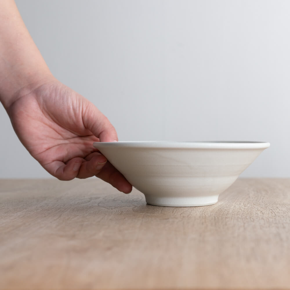 主張しすぎない白釉とシンプルなフォルムは、和の煮物や炊き込みご飯はもちろん、グリーンサラダやパスタ、シリアルボウルとしてもよく似合います。 木のテーブルやリネンのランナーとも相性がよく、和食器をはじめ北欧テイストやナチュラルなインテリアにも自然と溶け込んでくれます。