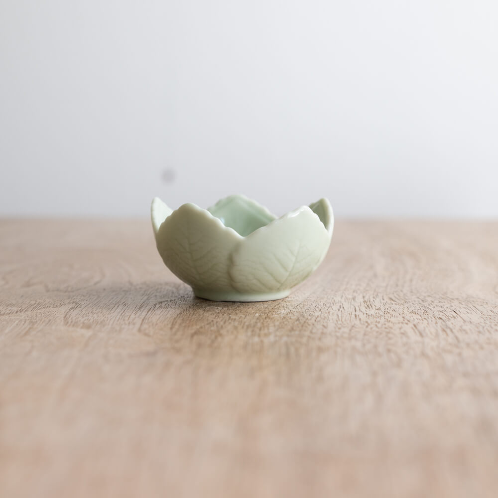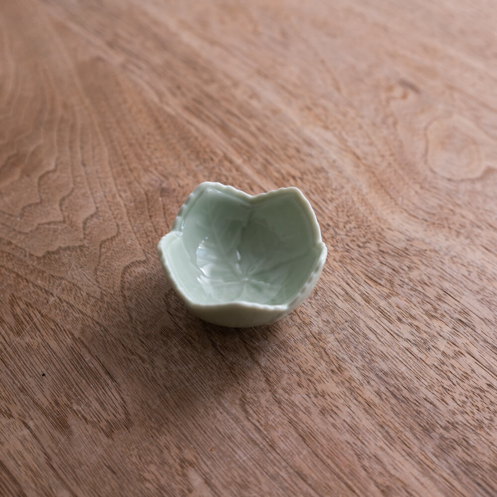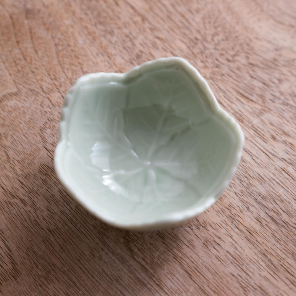 ほんのり青みを帯びたヒワ(翡翠)色は、光の角度で表情が変わり、料理の色味をふわりと引き立てます。磁器ならではのほんのり透ける質感が、小鉢ながら上品さをプラス。