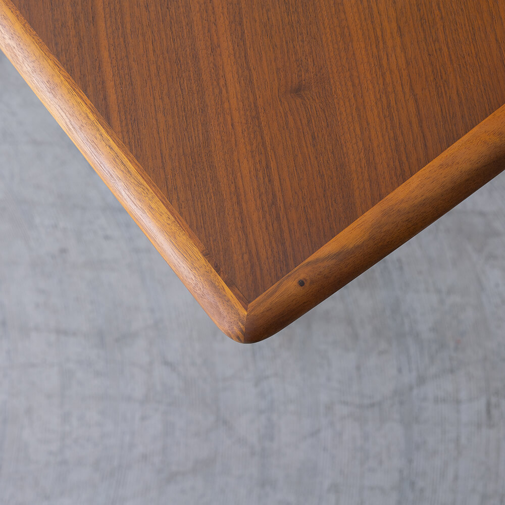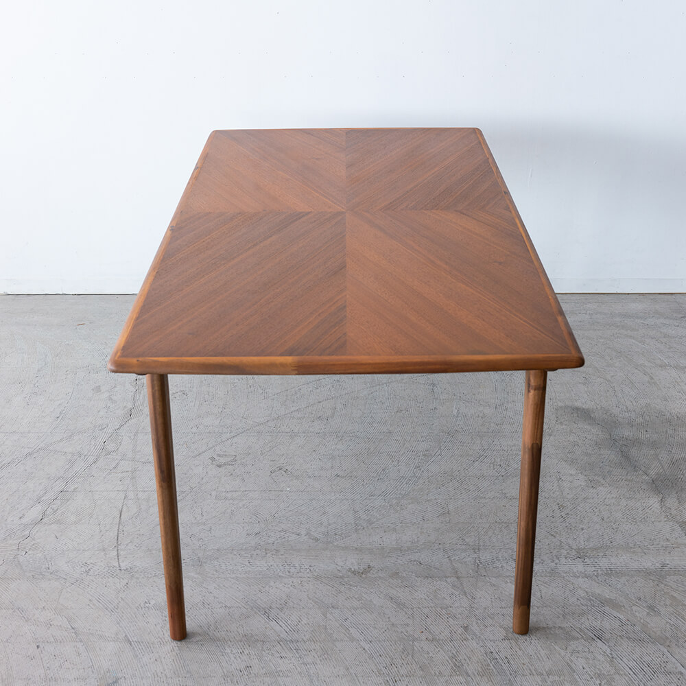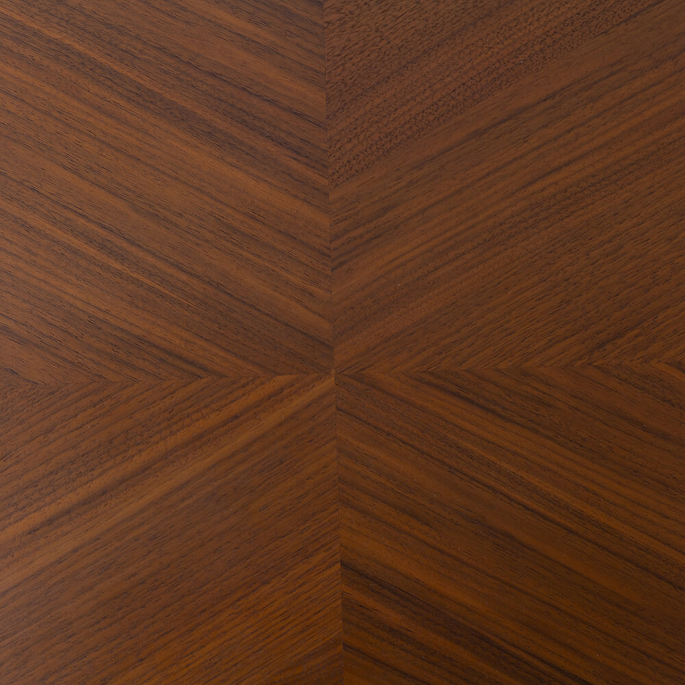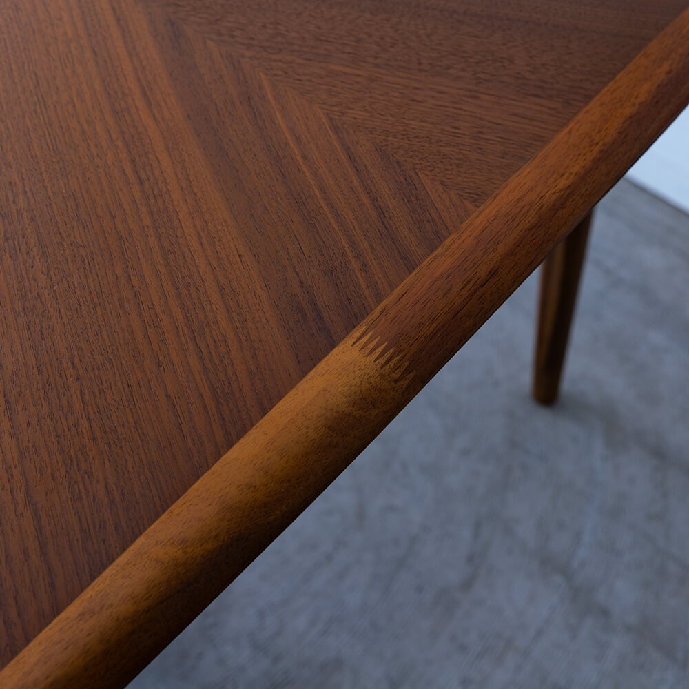 天板にはウォールナット突板を矢張りに配置。木目の向きが美しく交差し、光の角度で表情が変わるのが魅力です。丁寧な仕上げがヴィンテージスタイルに深みを添え、空間に個性を与えてくれます。