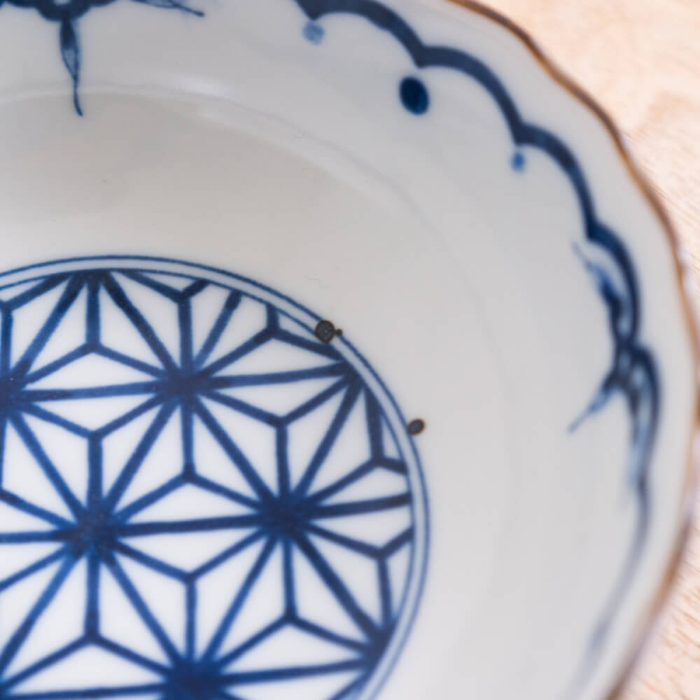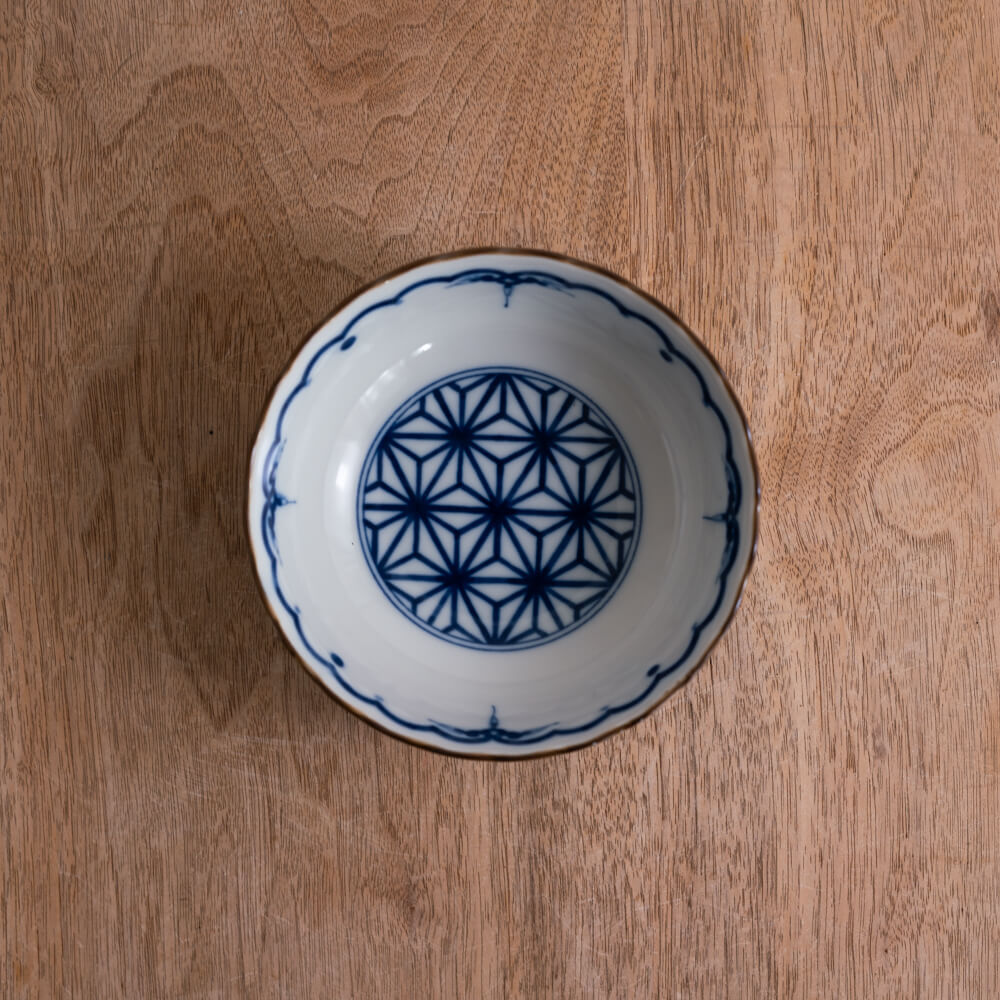 A. 麻の葉文様は、麻がすくすく伸びる植物であることから「成長」「健やかさ」の象徴とされてきました。昔は子どもの着物にも使われるほど。器に使われるのは珍しく、食卓にそっと“吉”を添えてくれる柄として人気があります。