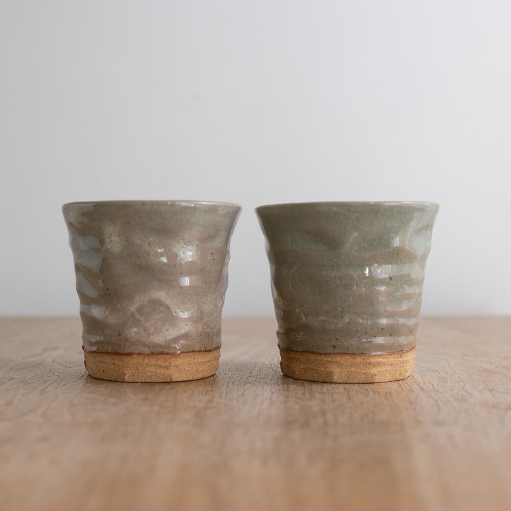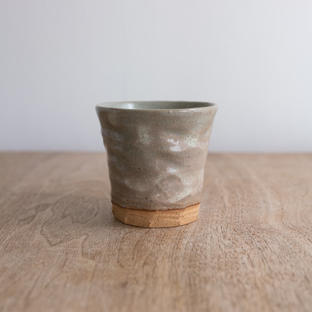 やわらかく立ちのぼる貫入の表情と、素地の土味がそのまま伝わる造形。手にすっと収まる丸みと、ほどよい高さが生む“安心の持ち心地”が魅力です。お茶、コーヒー、焼酎、お湯割り、冷たい飲み物まで。毎日の「ちょっと飲みたい」に自然と手が伸びる、和食器のフリーカップです。