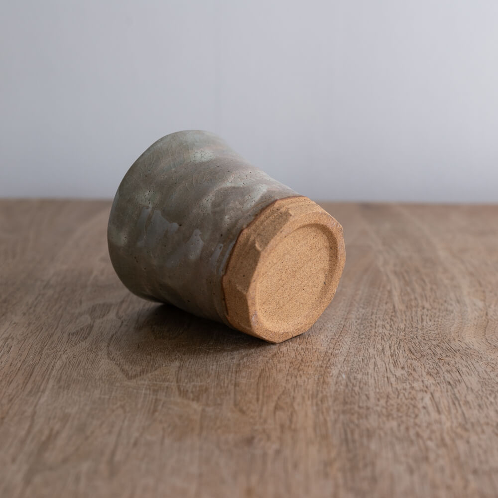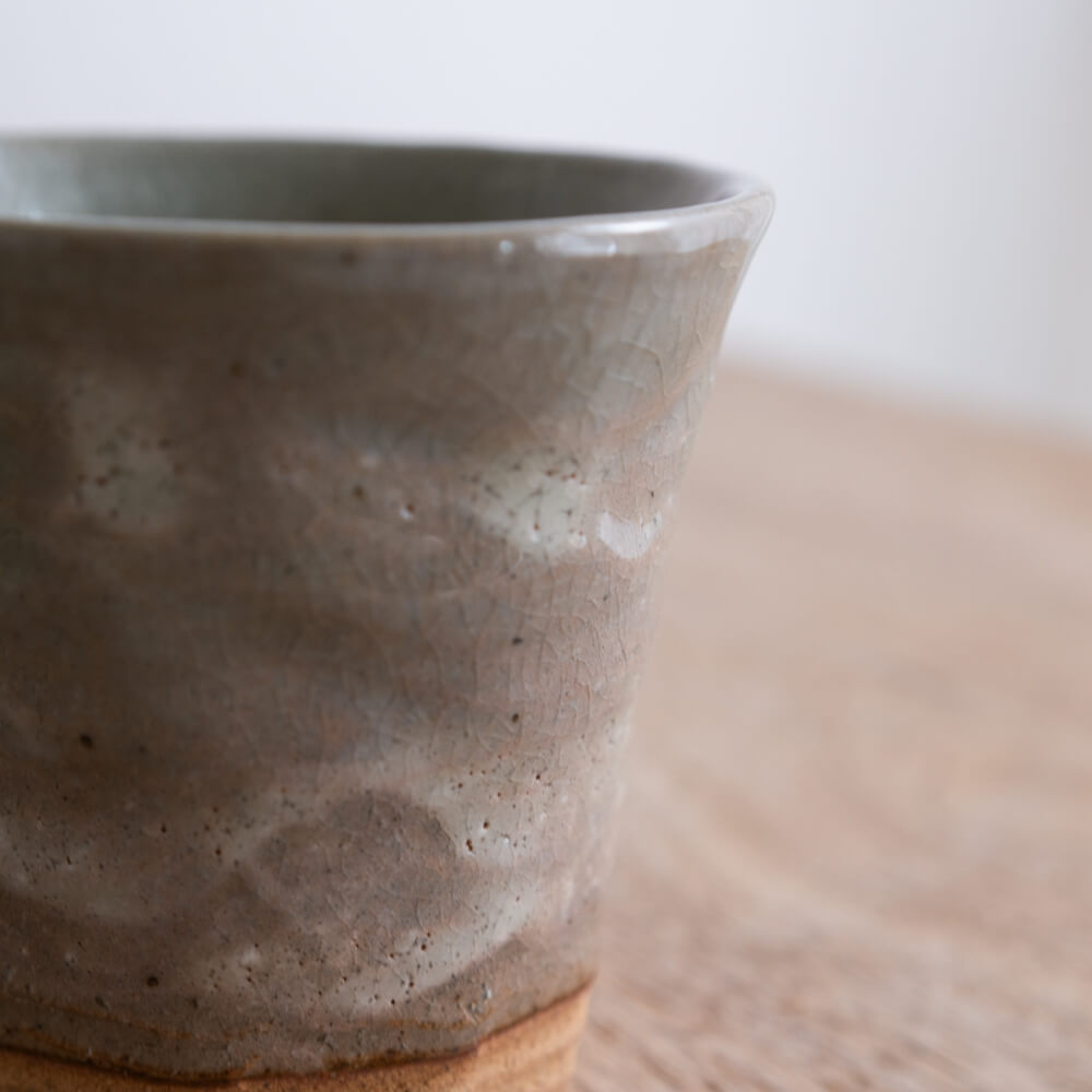 ろくろ成形で生まれた緩やかなラインは、指に沿って馴染む形。厚みを残したつくりで、熱い飲み物も持ちやすく、冷たい飲み物も結露が気になりにくい仕様です。手のひらに落ち着く絶妙なサイズ感です。