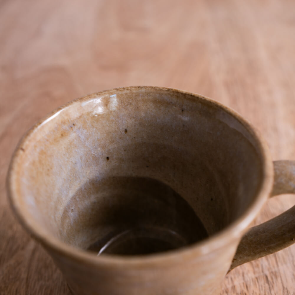 内側の釉薬にはほんのり濃淡があり、飲みものの色を優しく受け止めます。毎日の“いつもの一杯”が少しだけ上品に感じられる仕上がりです。