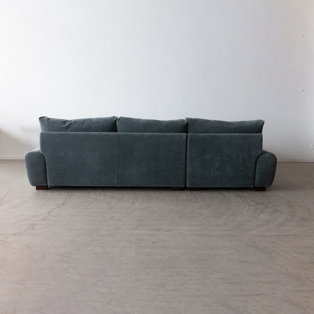 [現品SALE]マルゴソファ ワンアームカウチ1080(L)+1890(R)脚BR / 張地ウネ ブルー