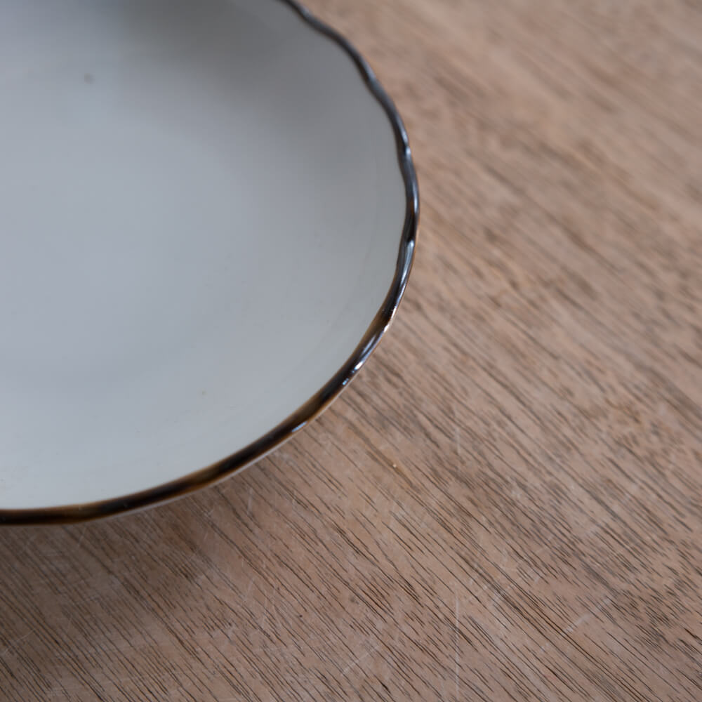 A. 白磁と渕錆の組み合わせが甘さを抑え、落ち着いた印象に仕上がっています。和食器としての品のよさがありつつ、日常のどんな料理にも自然に馴染みます。