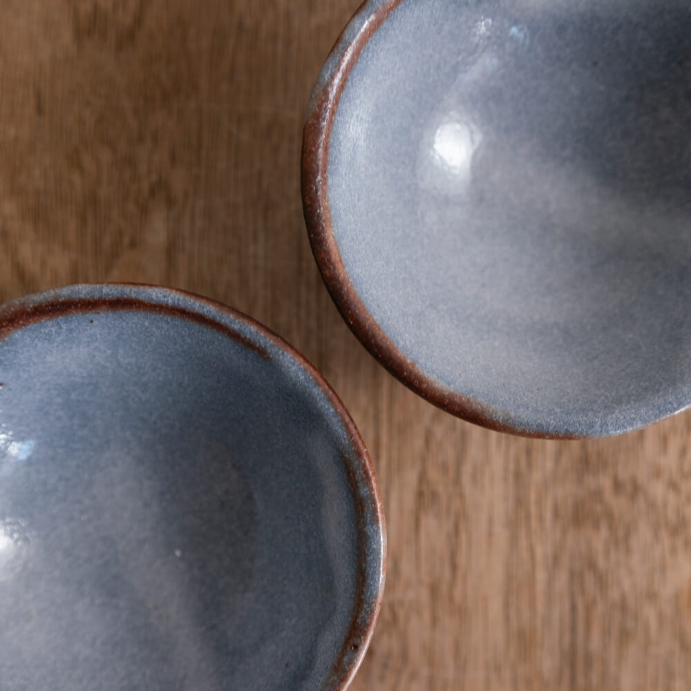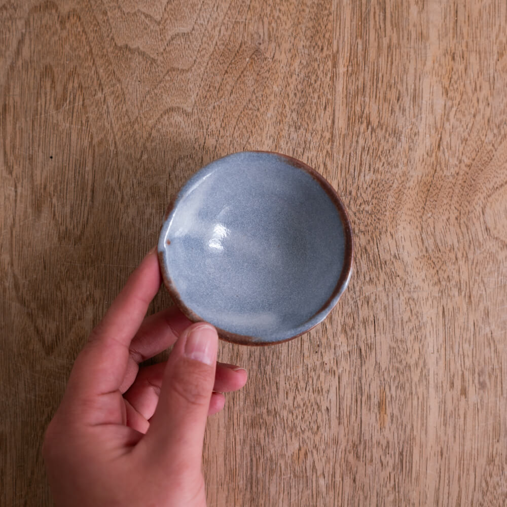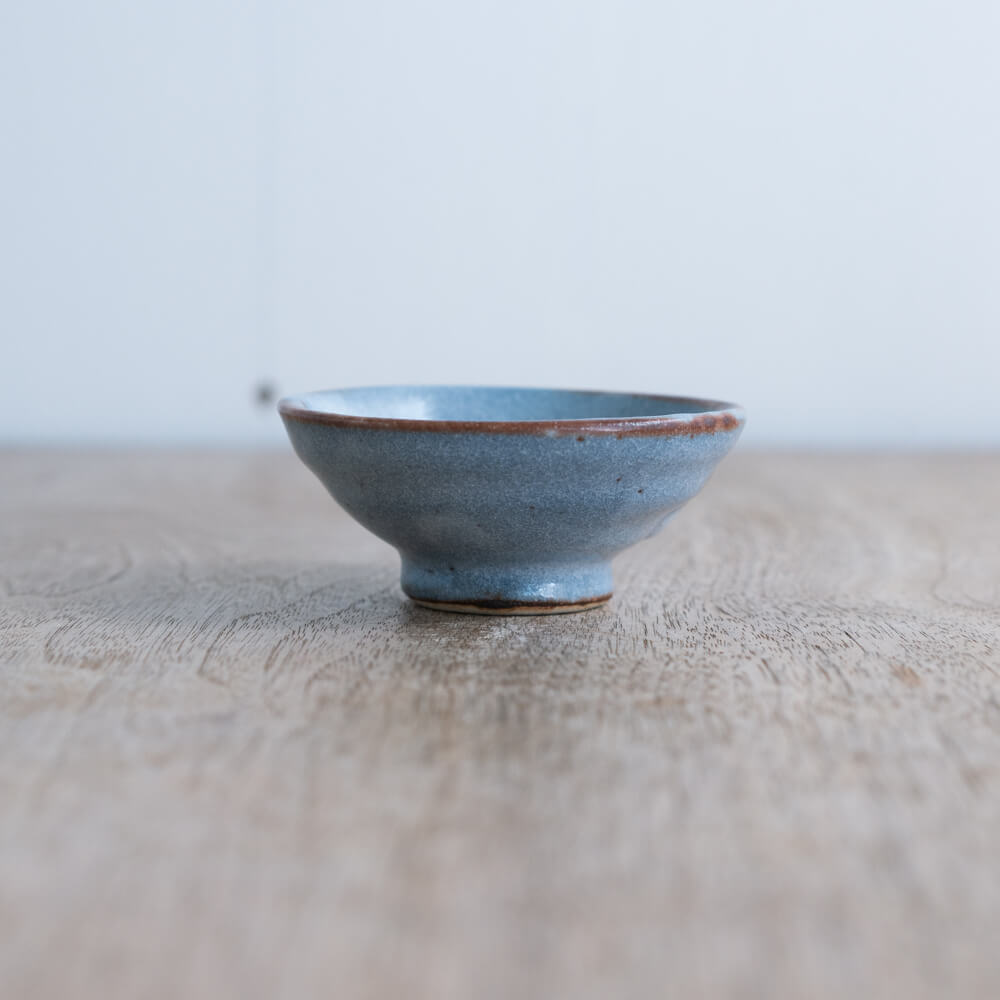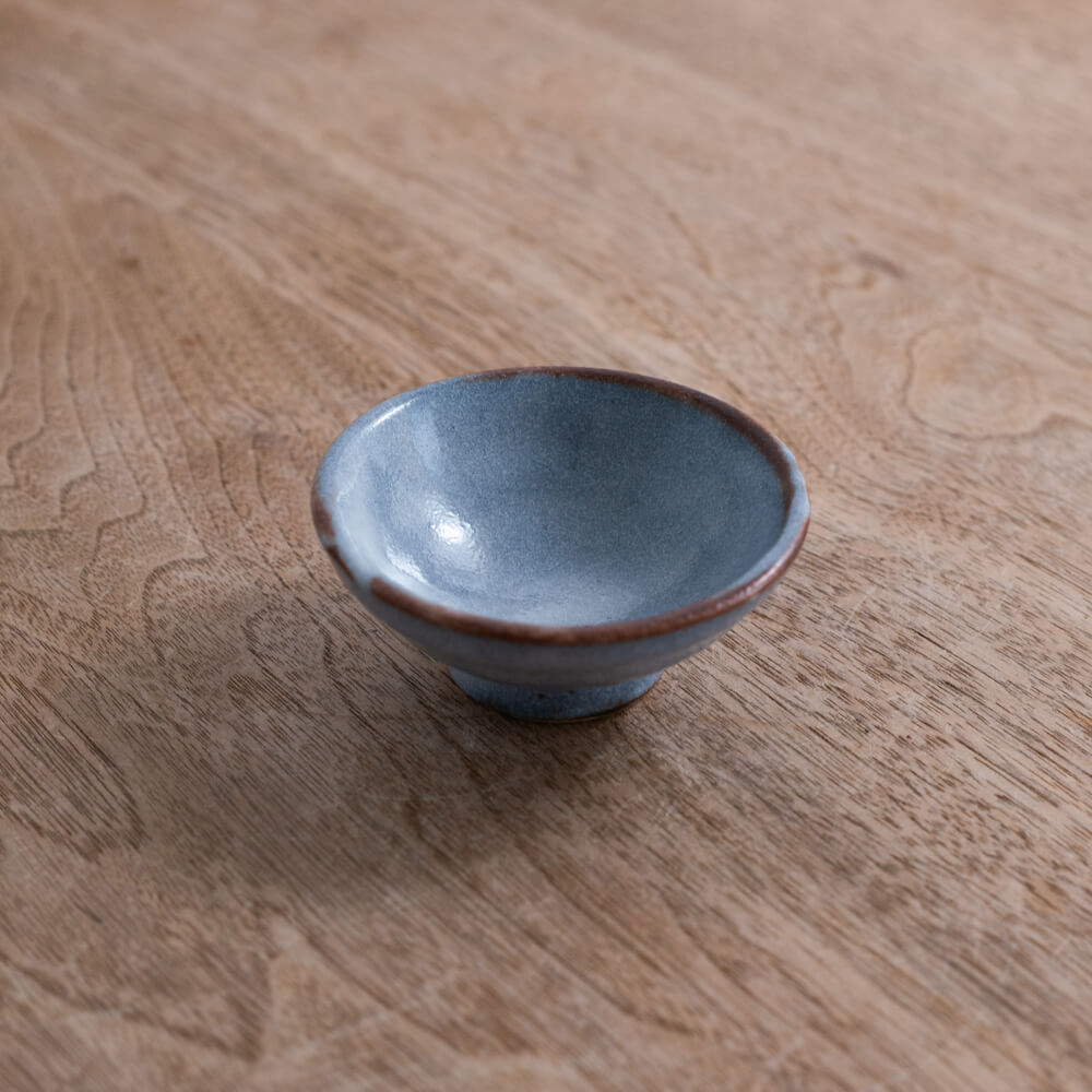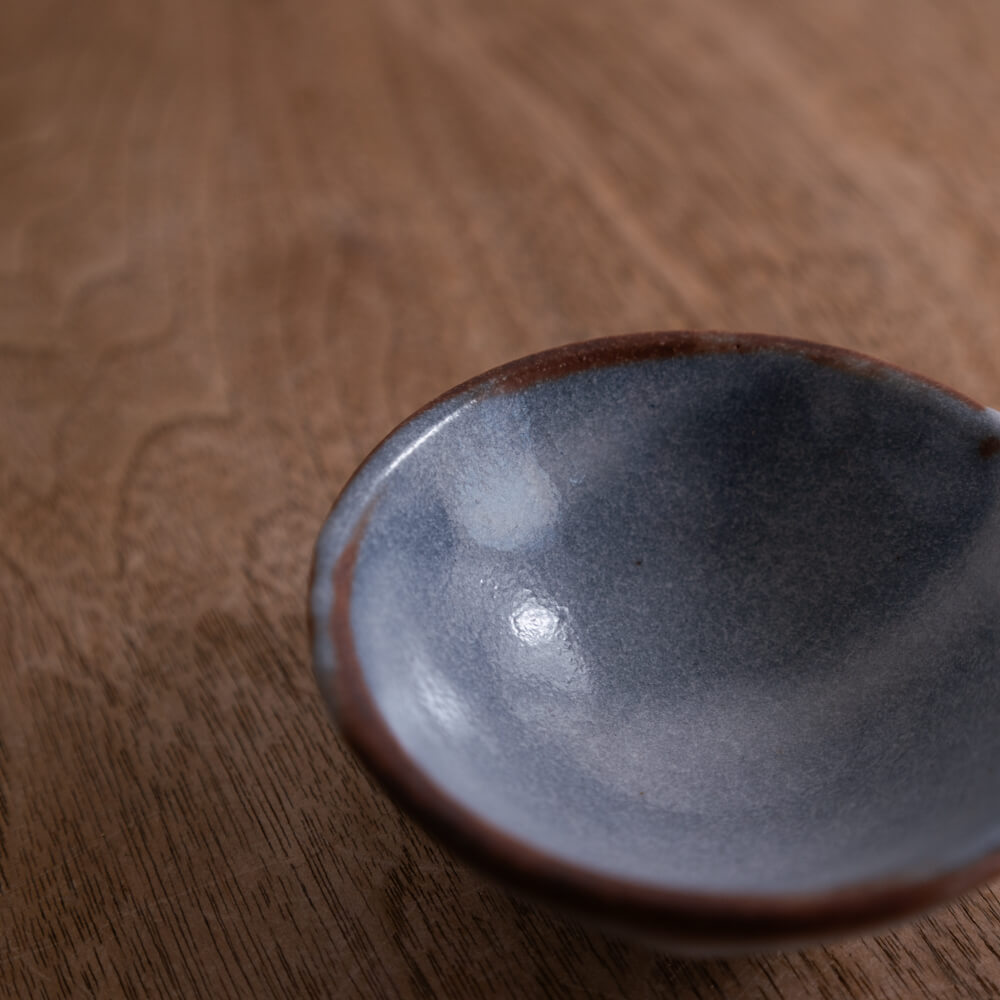 A. 灰青の発色・土の景色・ふっくら高台の三つが揃うのは意外と珍しい組み合わせ。小さな器でも存在感があり、テーブルの印象がやさしくまとまります。