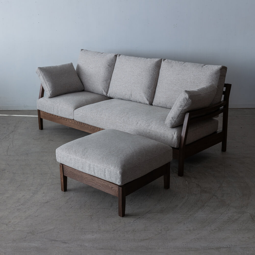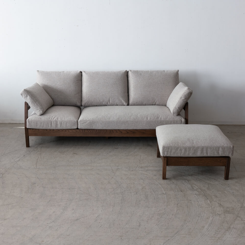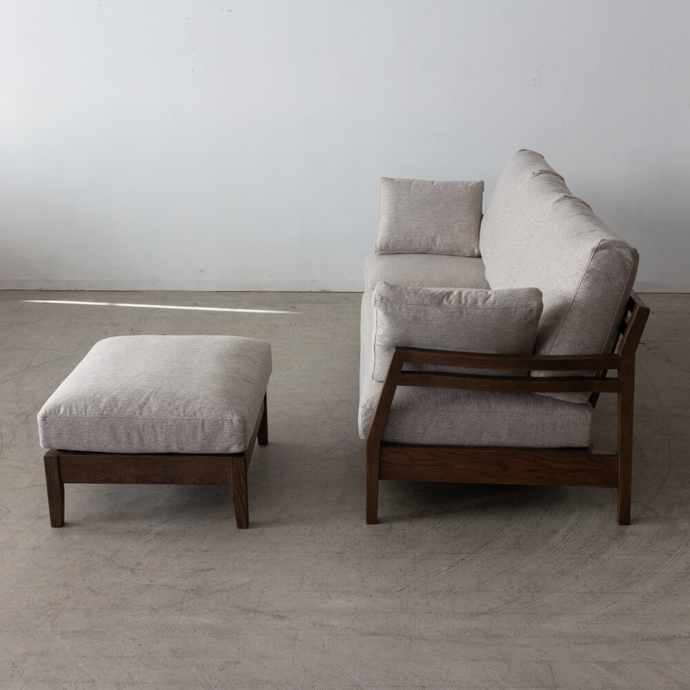 オットマンを組み合わせれば、カウチスタイルで足を伸ばしてくつろげます。来客時にはスツールとして、またはサイドテーブル代わりとしても活躍。暮らしのシーンに合わせて多用途に使える万能アイテムです。