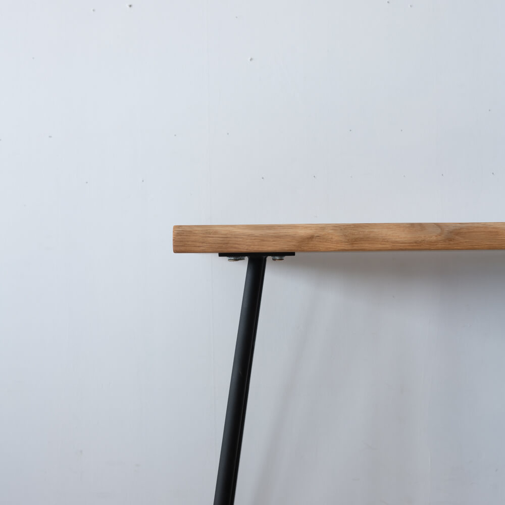ストレートな4本脚アイアンが、木の質感を引き立てつつ、全体を軽快な印象に。奥行き415mmのスリムサイズは、ワークデスク・ドレッサー・飾り棚など多用途にフィット。限られたスペースでも圧迫感を出さず、空間にすっと馴染みます。