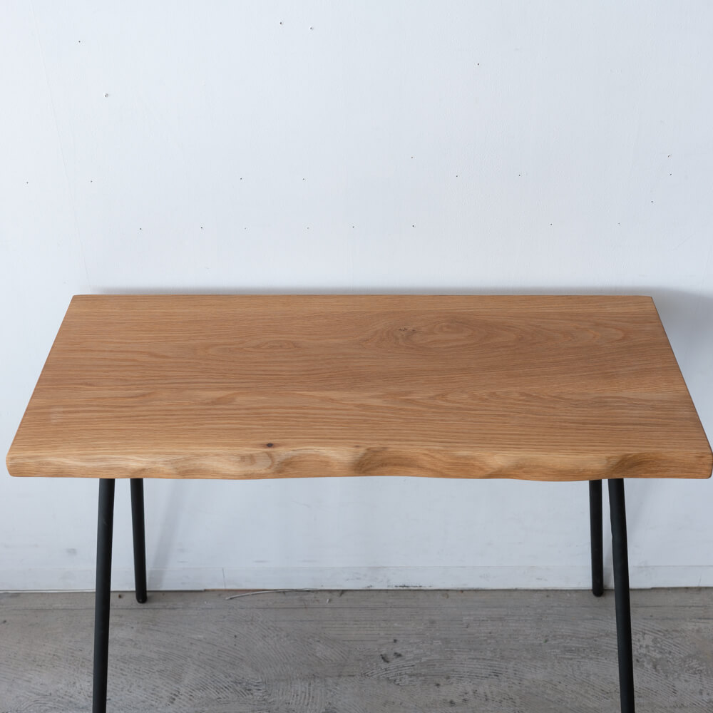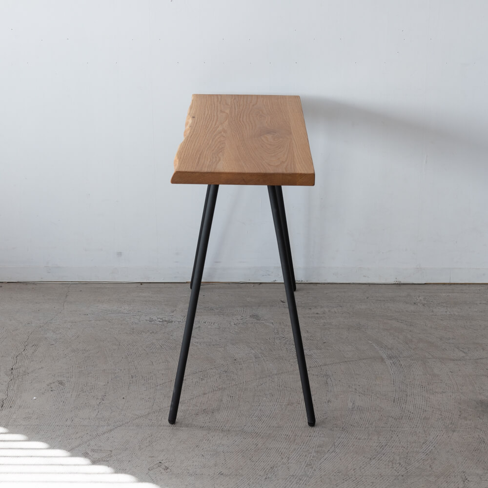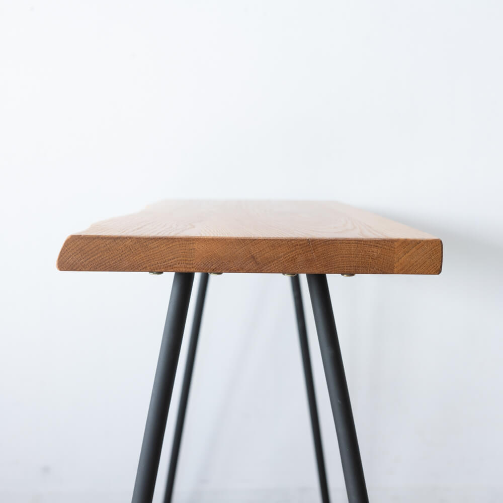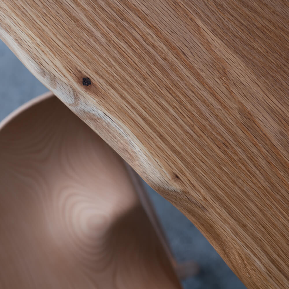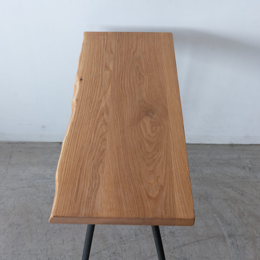 本来ならカット後に用途が限られがちな部分を、美しい耳付き材として再び家具へ。素材の個性をそのまま活かすことで、木の命を余すことなく使った一台です。