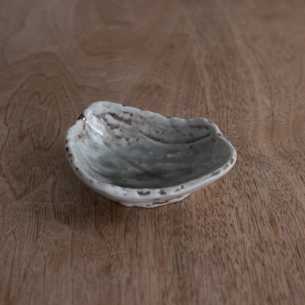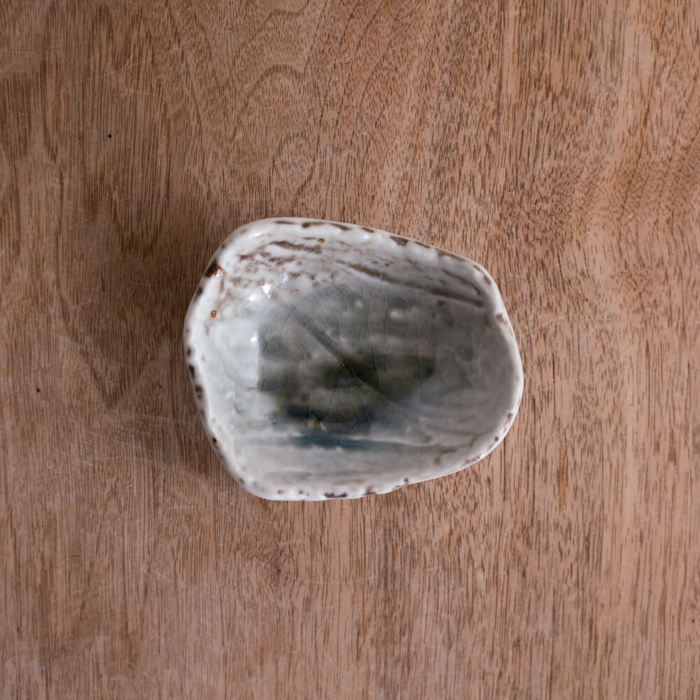 淡くにじむ青と白が重なり、まるで湖畔に浮かぶ小さな水面のような佇まい。ゆるやかな縁のラインや、素地に浮かぶ細かな貫入が、手仕事のあたたかさをそっと伝えてくれる小鉢です。副菜・薬味・小さなお菓子にも合わせやすく、和食器らしい落ち着きと優しい景色が食卓に寄り添います。
