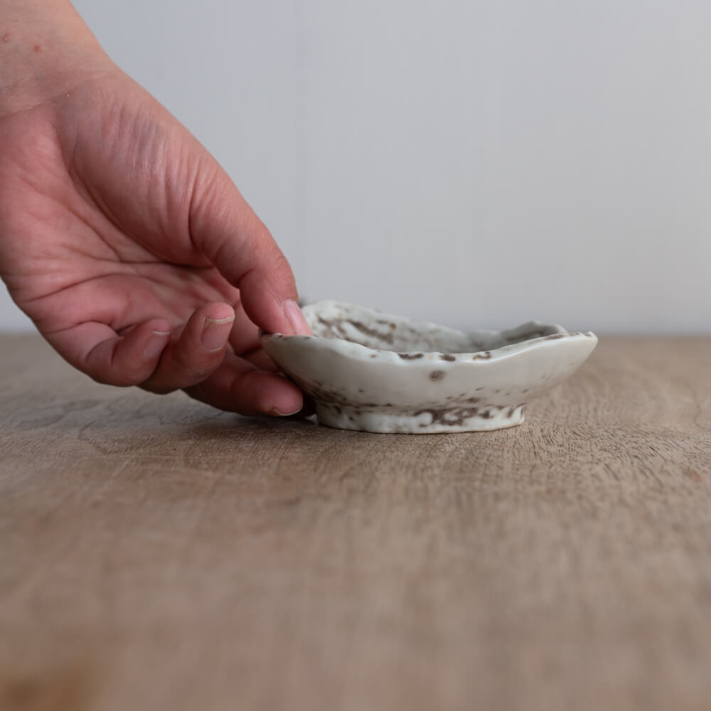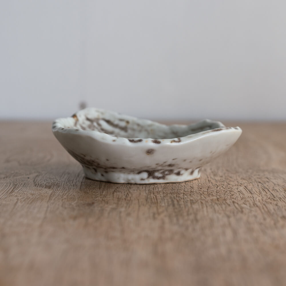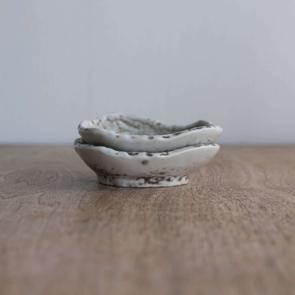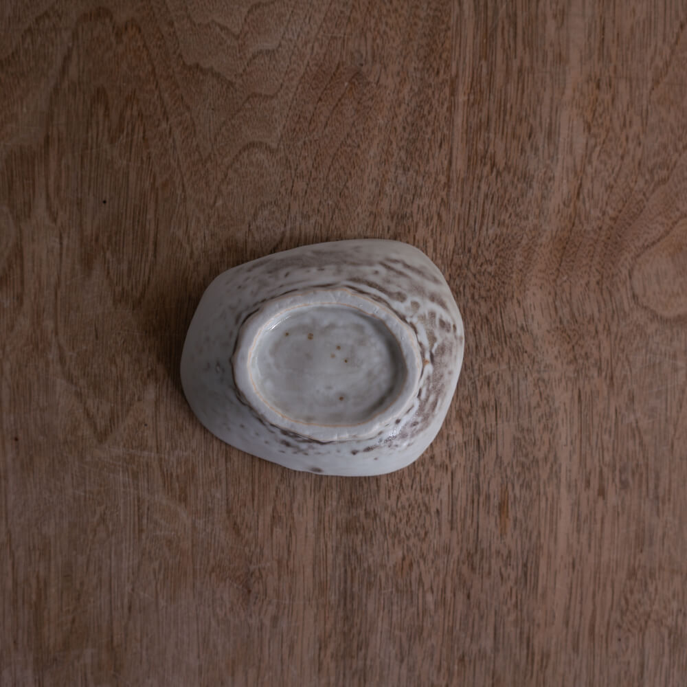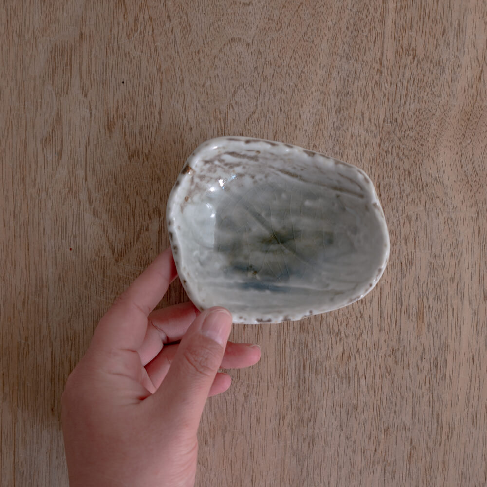 縁はまっすぐではなく、自然な揺らぎを残した稜線。触れたときの優しさが心地よく、見た目の印象も柔らかに。副菜やお浸し、ちょっとした盛り付けにちょうどいいサイズで日常使いに向いています。