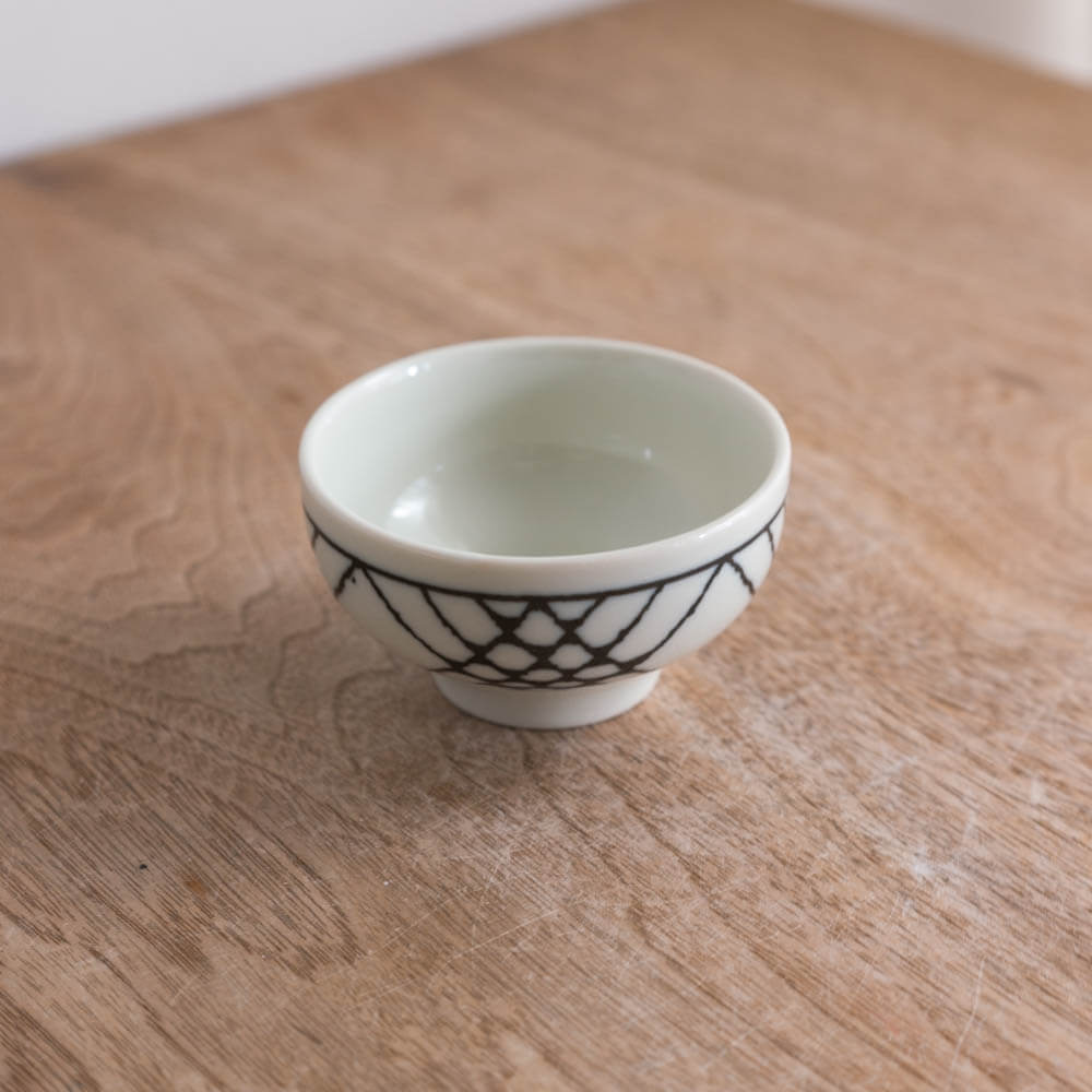 すっと澄んだ白磁に、黒の線が軽やかに巡る豆鉢。静かで端正、それでいてどこか印象に残る佇まいは、日々の食卓にほどよいアクセントを添えてくれます。副菜や薬味、小さなお菓子まで、盛るものを選ばず美しく受け止める一枚です。