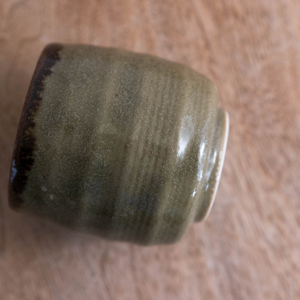 釉薬が流れ、溜まり、静かに重なり合うことで生まれた奥行きある色合い。深い緑の中に、わずかに揺らぐ濃淡があり、光の入り方で表情が変わります。均一ではない景色が、器にあたたかな個性を与えています。