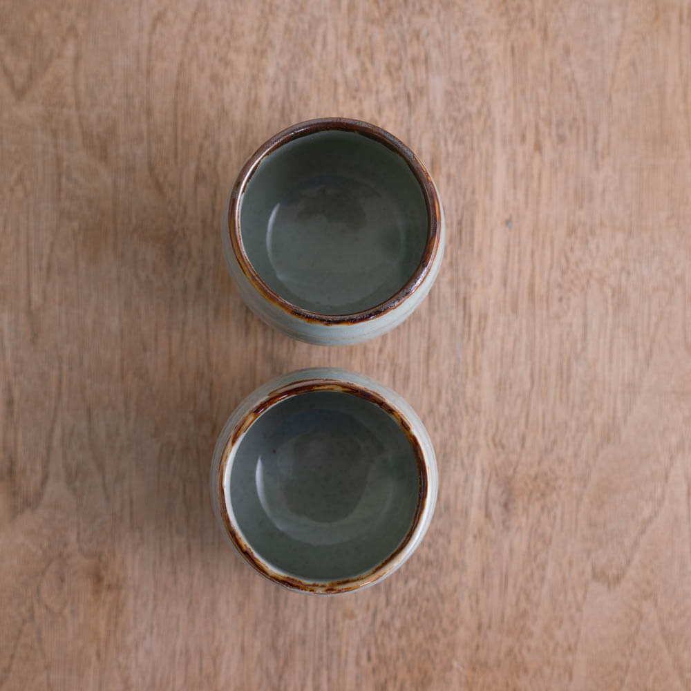 くすみ青釉の丸湯呑み|