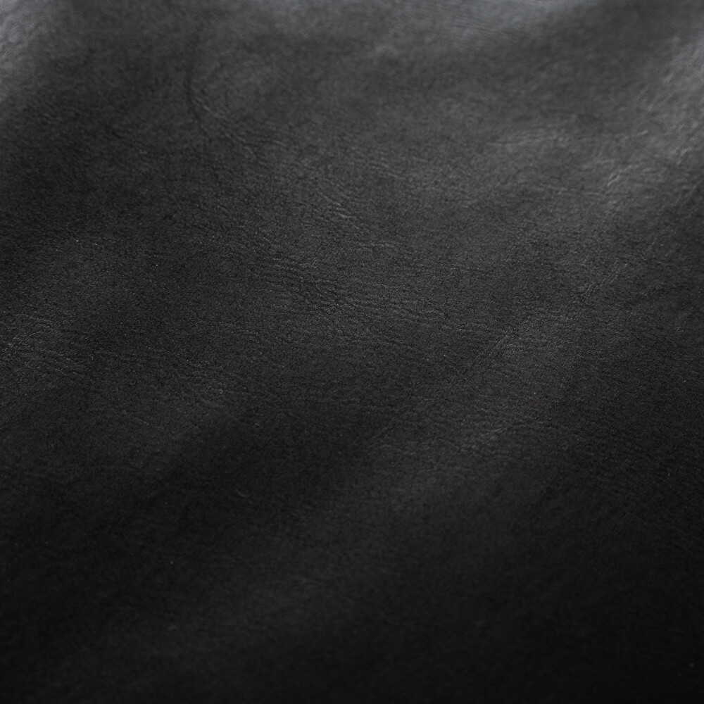 革のような見た目を持ちながら、布地ならではの扱いやすさが魅力です。ブラックカラーは空間を引き締めつつ、木部の明るさを引き立て、モダン・北欧・和モダンなど幅広いインテリアに対応します。