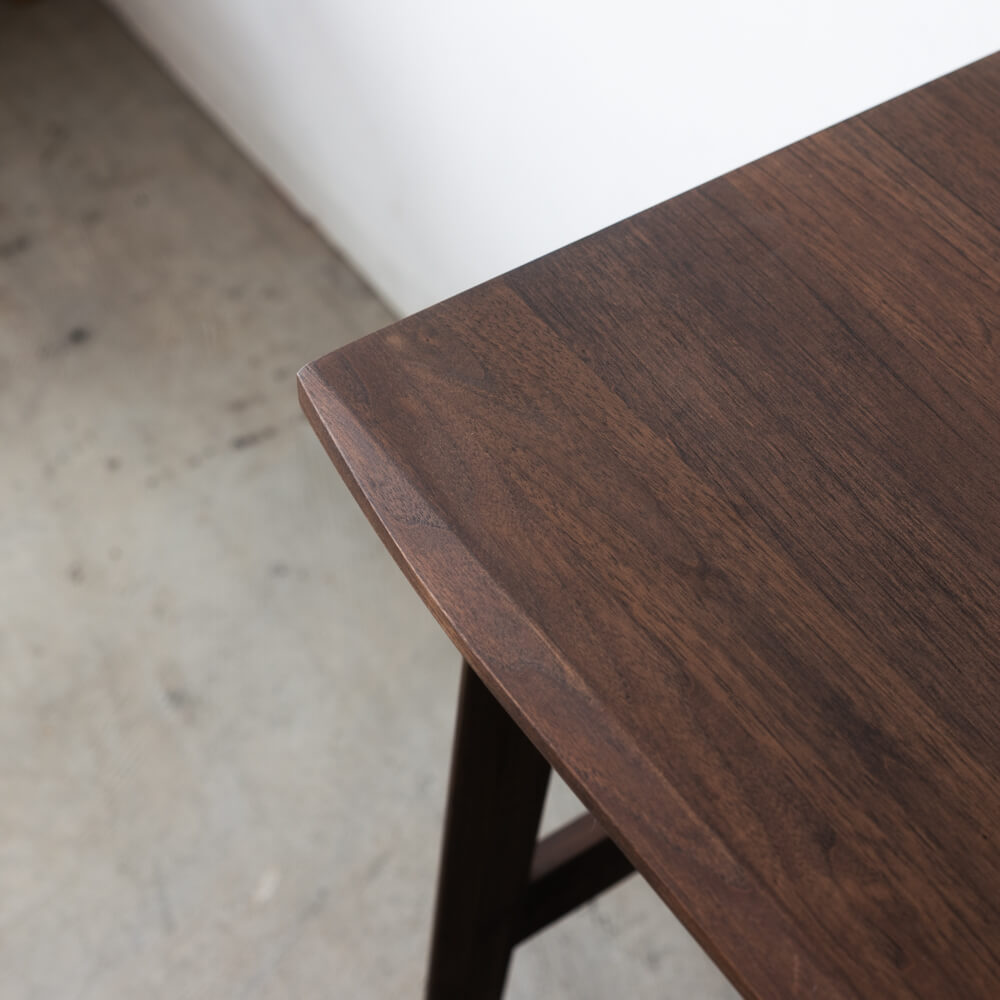 素材には、深みのある色合いが魅力のクルミ材を使用。落ち着いたダークトーンが空間を引き締めつつ、天然木ならではの柔らかさも感じさせます。天然植物性オイル(ワックス仕上げ)により、木の質感を損なわず、しっとりとした触り心地に仕上げています。