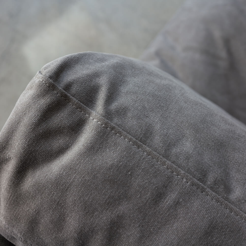 張地には帆布素材を採用。さらりとした触り心地で、季節を問わず快適にお使いいただけます。使い込むほどにやわらかさが増し、暮らしに馴染んでいく表情も魅力のひとつです。
