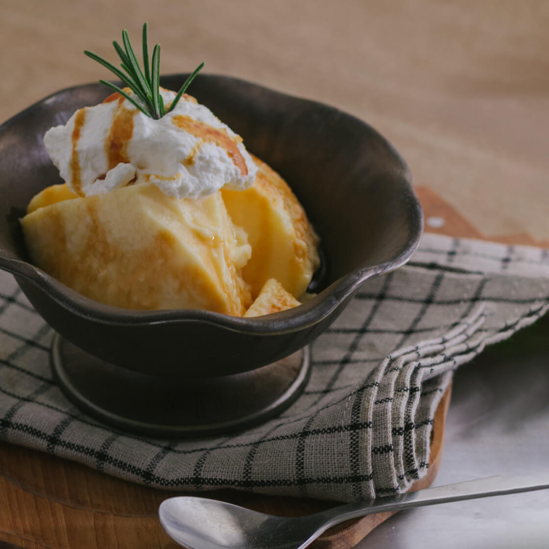 縁にやさしい揺らぎをもたせたフォルムは、料理を包み込むような安心感。プリンやゼリー、果物、和洋菓子はもちろん、小さな前菜や副菜にも美しく寄り添います。高台があることで、自然と“見せる盛り付け”が完成します。