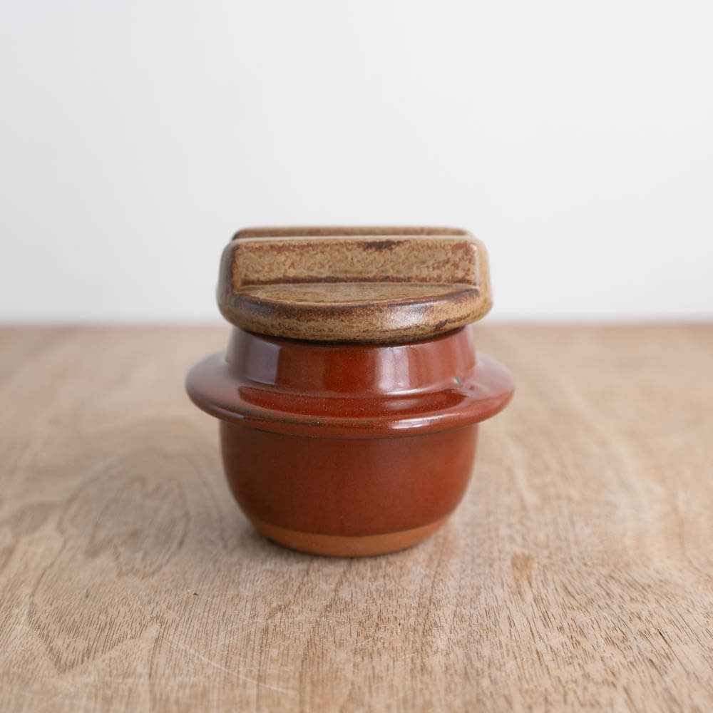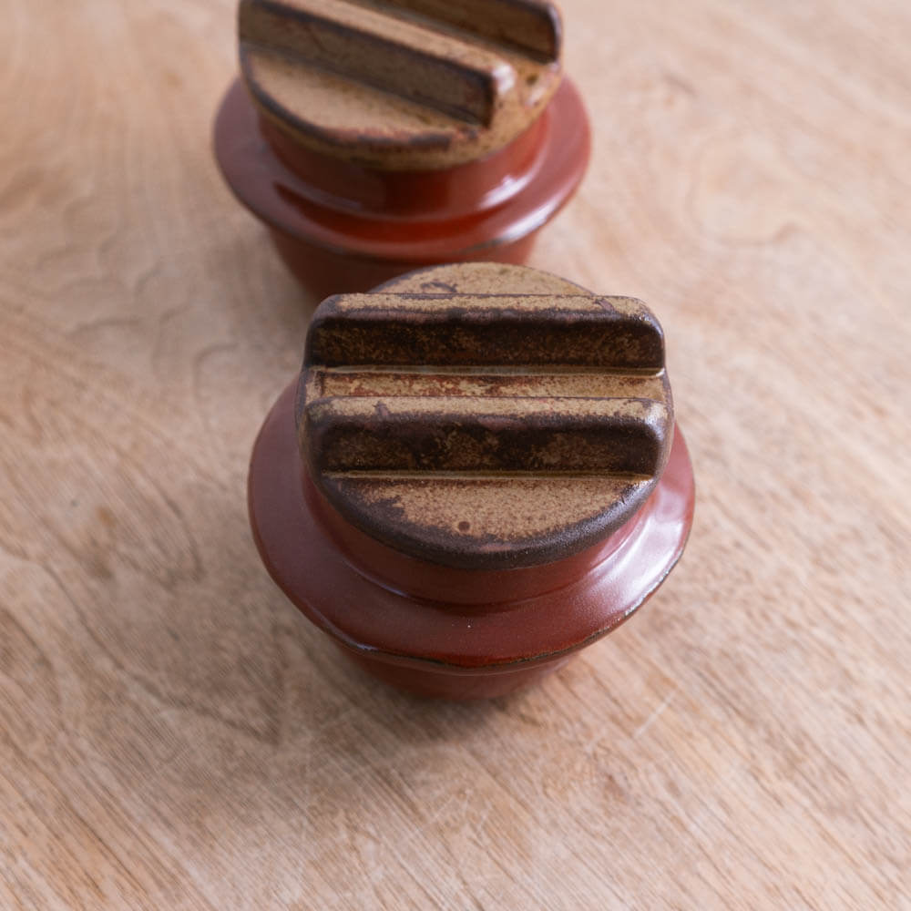 製造工程で生じる細かい傷や色むら、黒点(鉄粉)などが見られる場合がありますが、それも焼き物ならではの味わいの一部。アウトレット品としてお求めやすい価格で提供されているため、気軽に日常に取り入れられます。形状や蓋の収まりには個体差があるアウトレット品です。保存容器としてお使いいただくことは可能ですが、歪みによって完全な密封性は保証できません。そのため、湿気や鮮度管理が必要な食品よりも、観賞用や演出を兼ねた使い方をおすすめしています。