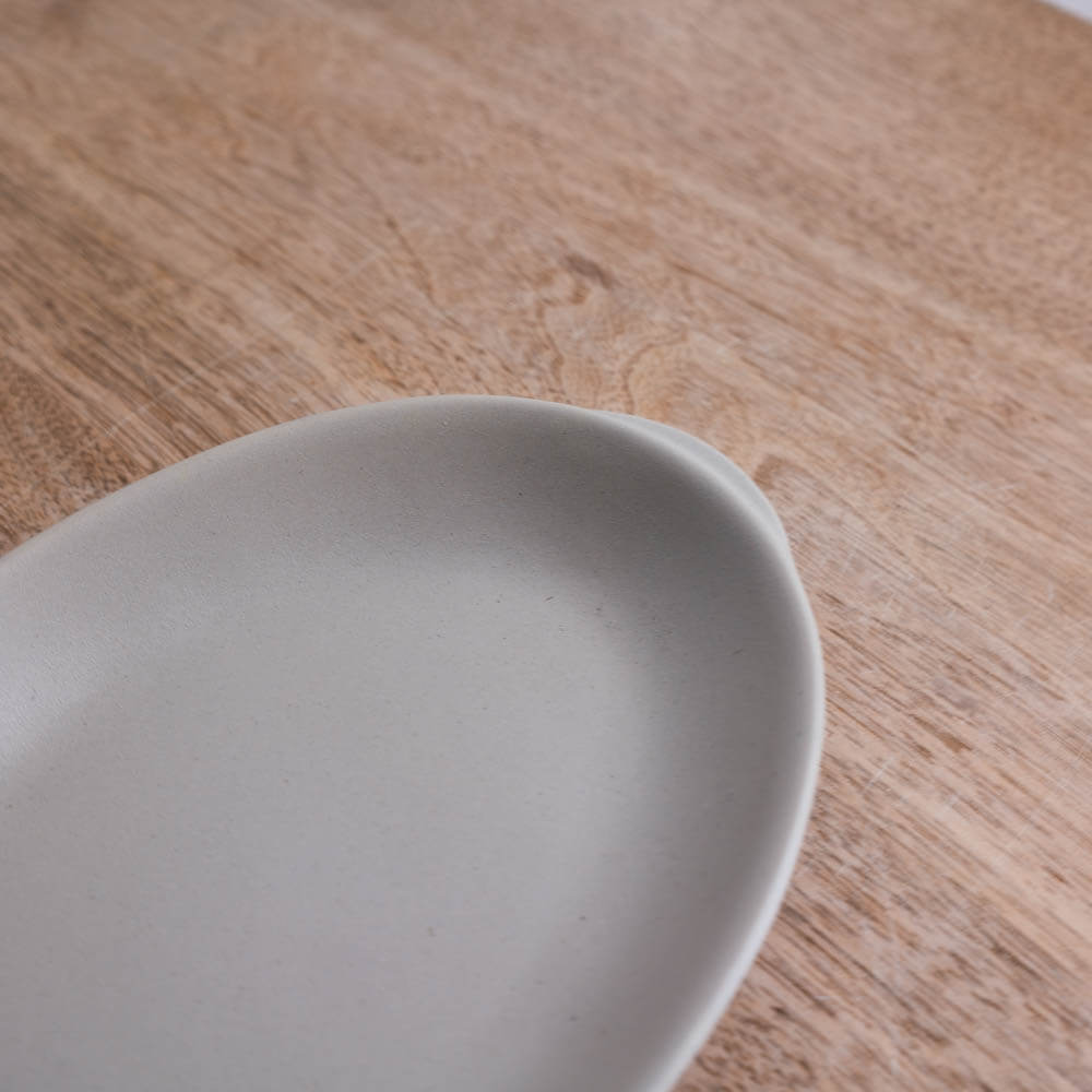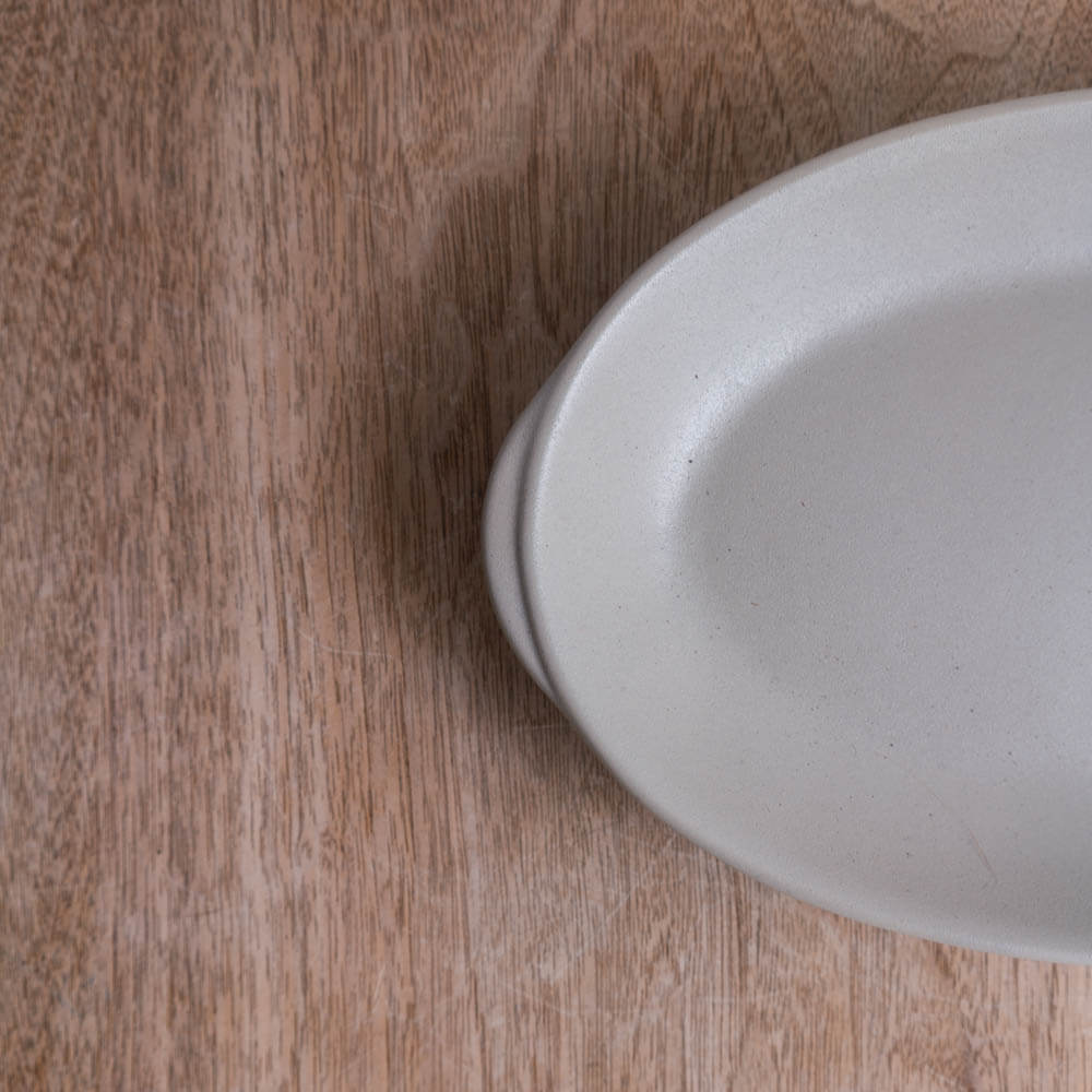 横に広がる楕円形は、料理をのせたときのバランスがとりやすく、主菜と副菜、パンとサラダなどを一緒に盛っても窮屈になりません。浅めの立ち上がりが余白をきれいに見せ、「盛りすぎない」心地よさをつくってくれます。