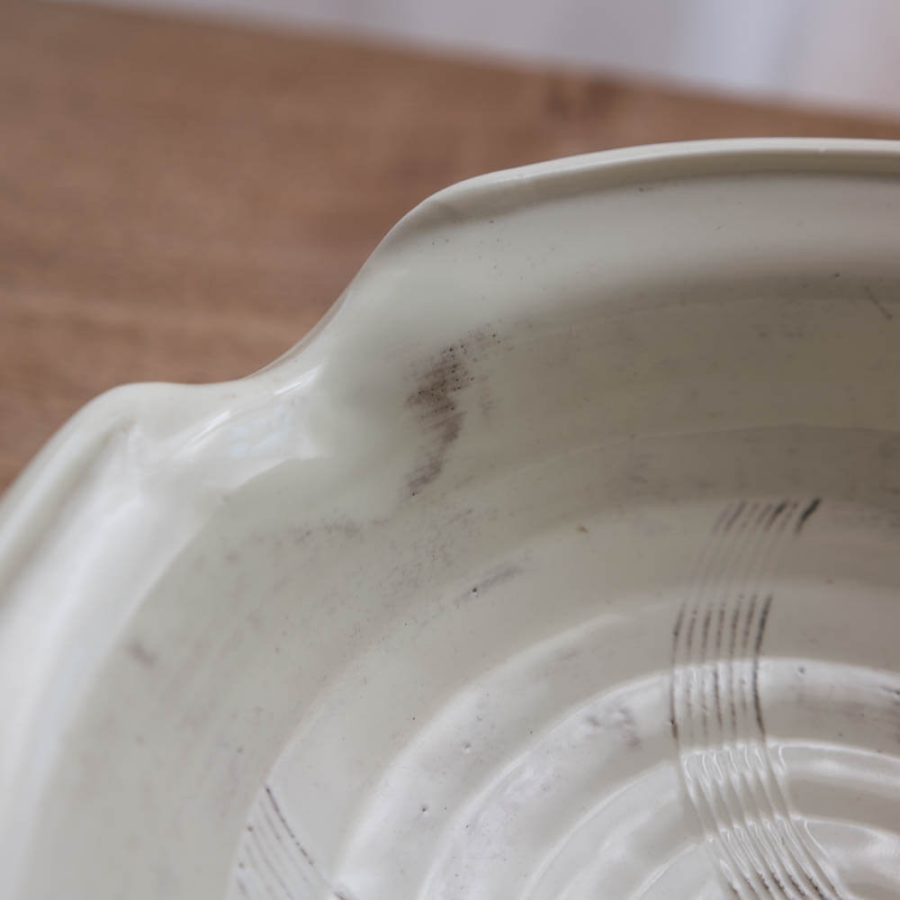 片口の形は、見た目のアクセントになるだけでなく、実際の使い心地にもやさしく寄り添います。煮物やサラダを盛り、そのまま取り分けたり、ソースやタレを添えたり。「盛鉢」と「注ぐ器」の役割をひとつにまとめた、日常使いにちょうどいいかたちです。