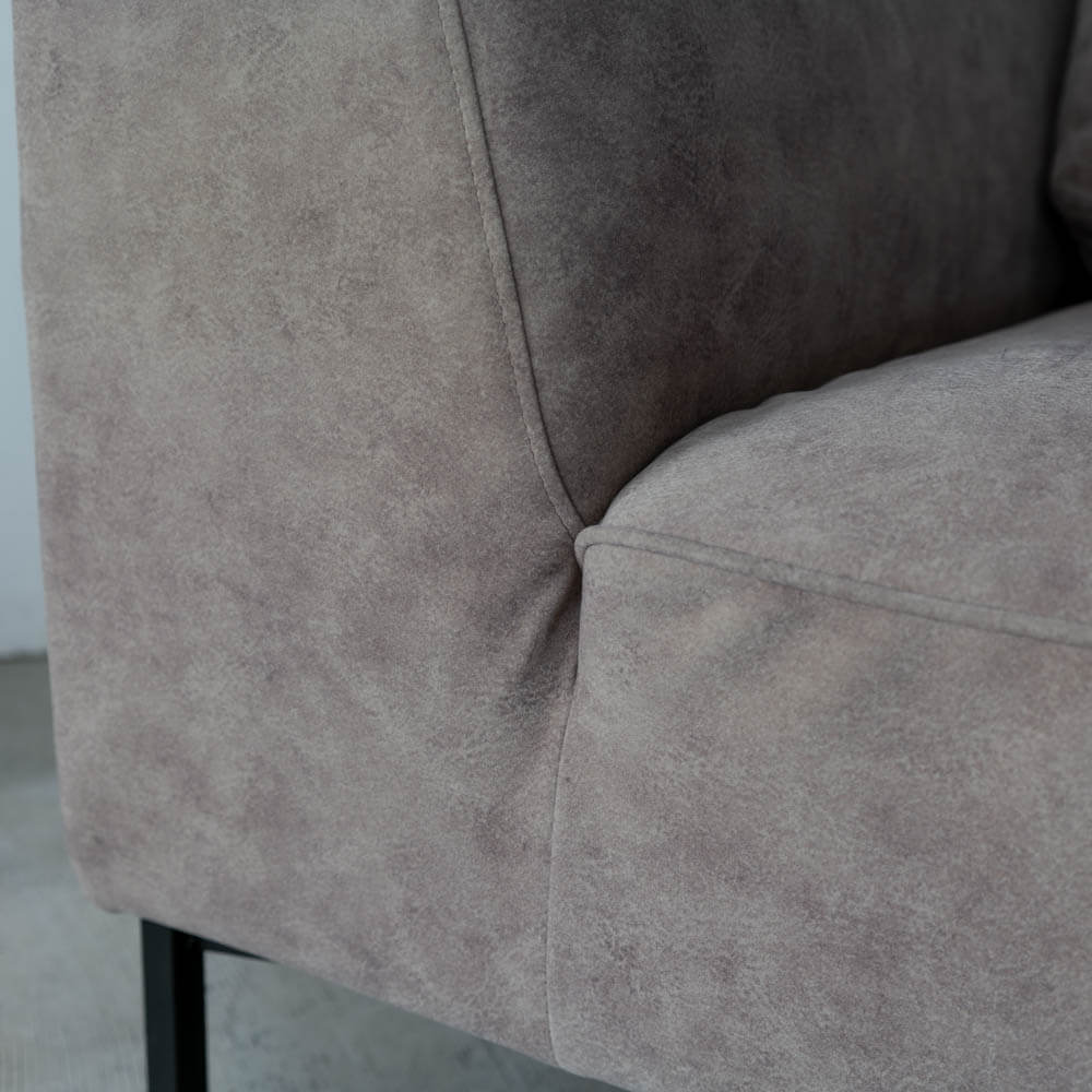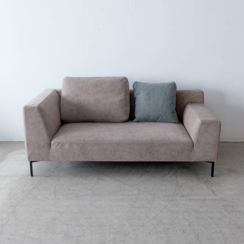 このソファ最大の特徴は、左右で高さの異なる両肘デザイン。片側は背と同じ高さのハイアーム仕様で、横向きに座ったときには背もたれとしてもしっかり身体を支えます。反対側は圧迫感を抑えたローアーム設計。肘を預けたり、頭を乗せて横になることもでき、使い方を限定しません。左右対称ではないからこそ、暮らしの動きに自然とフィットします。