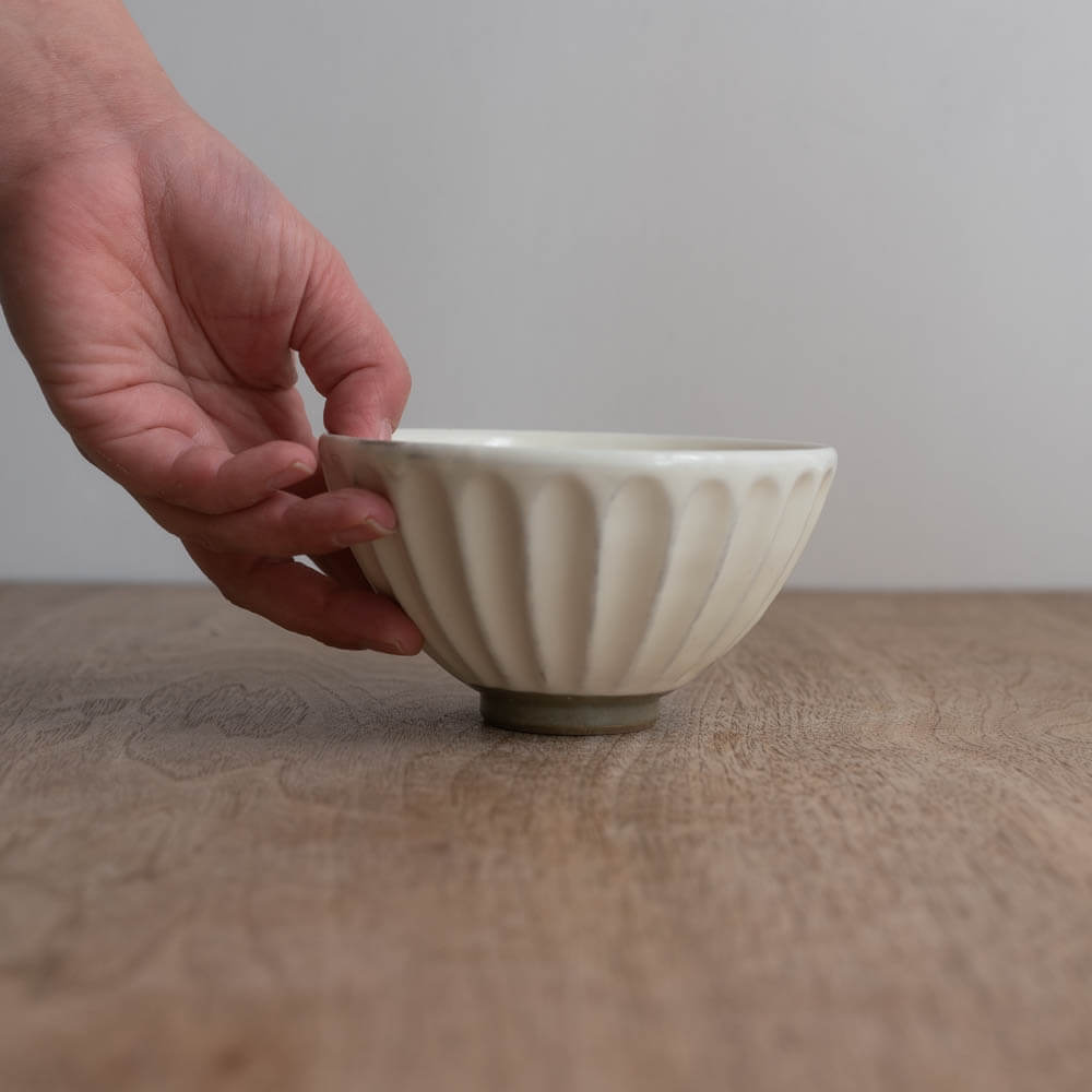 白のしのぎが映える、大平のご飯茶碗。