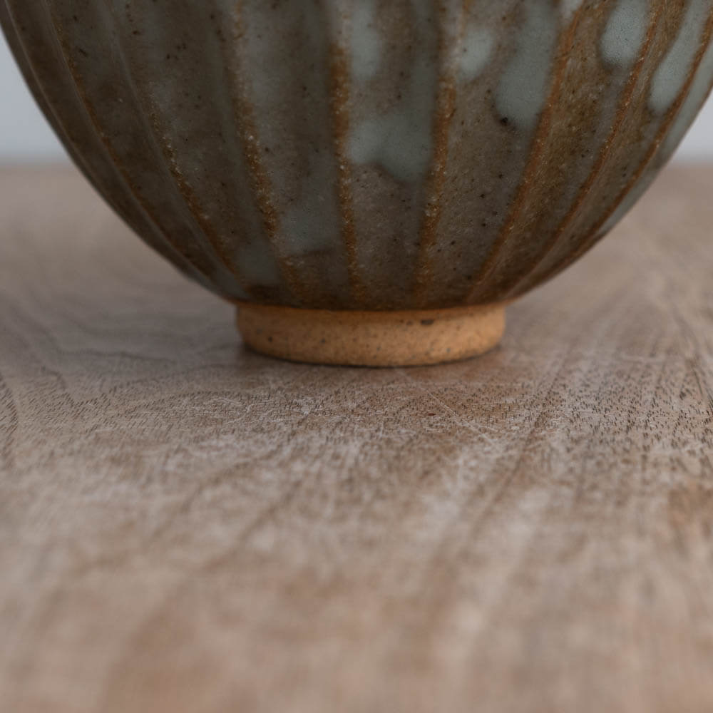 側面に入ったしのぎ模様が、釉の濃淡と重なり、奥行きのある陰影を生み出します。無地では少し物足りない、けれど装飾的すぎるのは避けたい——