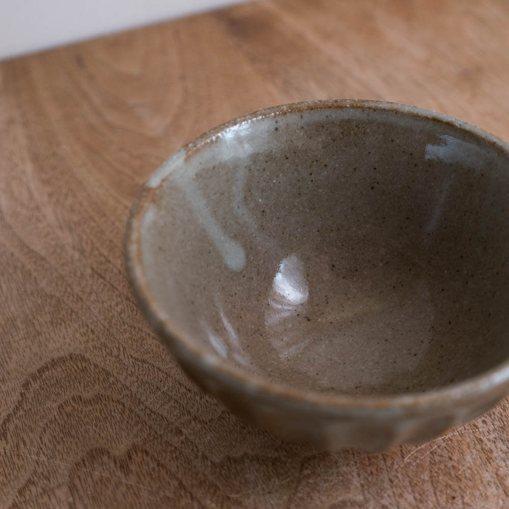 静かで、深みのある灰色。このご飯茶碗は、色で主張するのではなく、ご飯を引き立てるための“背景”になる器です。しのぎの凹凸が生む陰影と、落ち着いた釉の表情が、毎日の食卓を少し大人びた印象に整えてくれます。